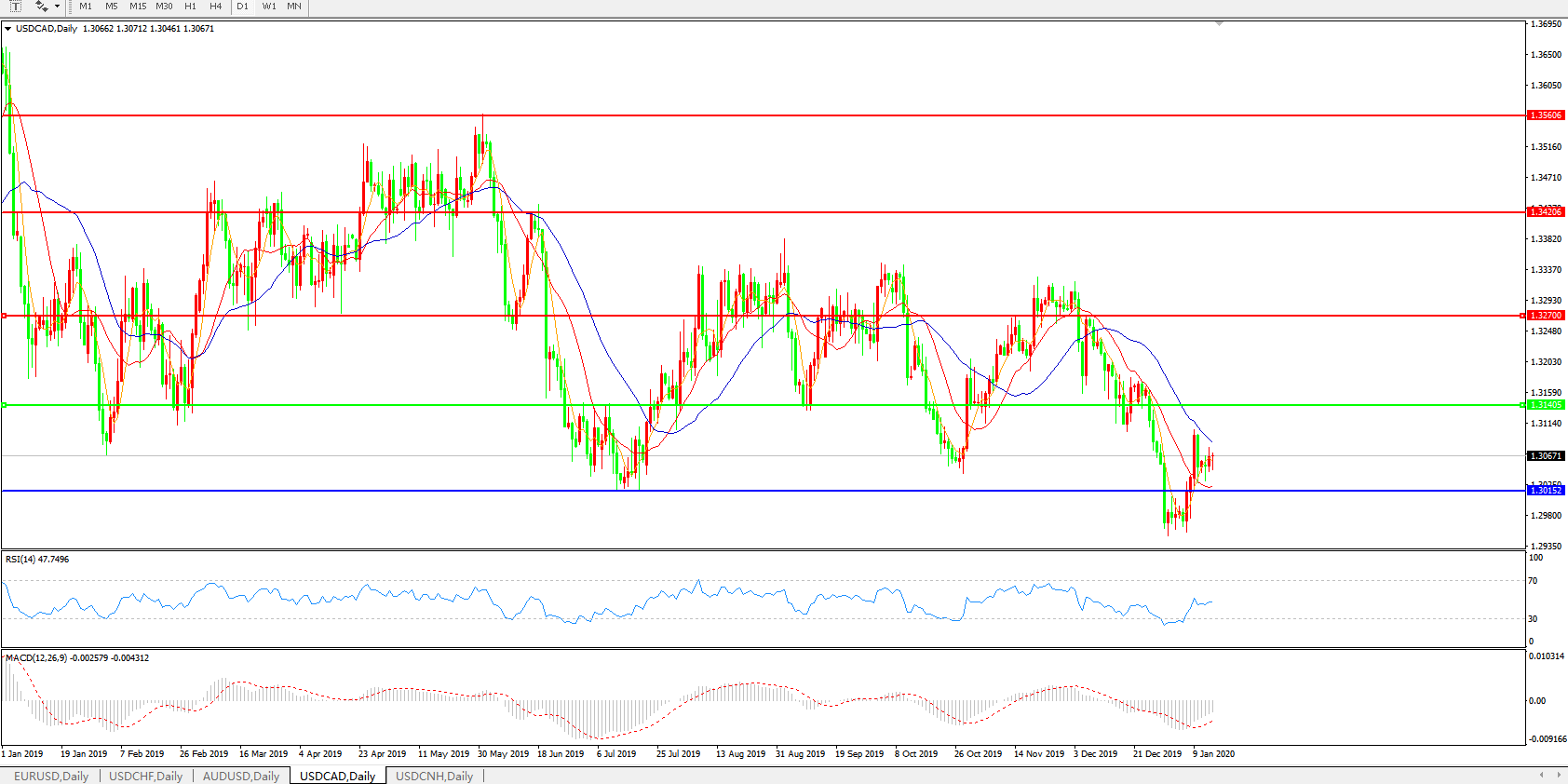 美元兑加元USDCAD    日线图: