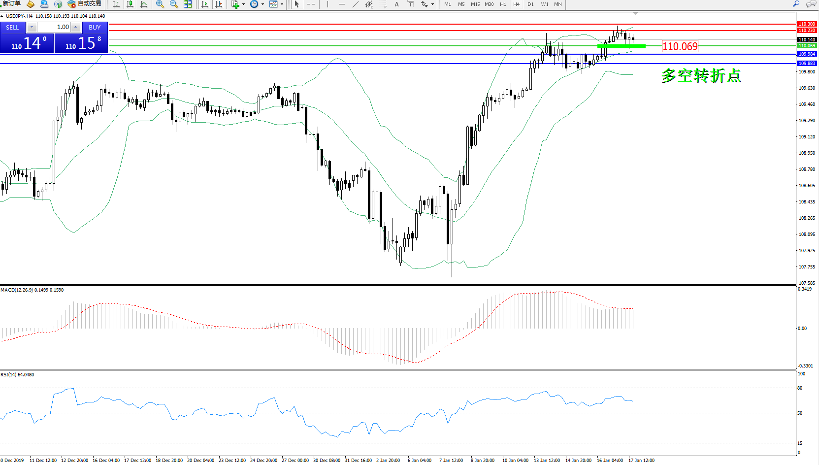 交易策略:110.069上方看涨,目标110.230110.300