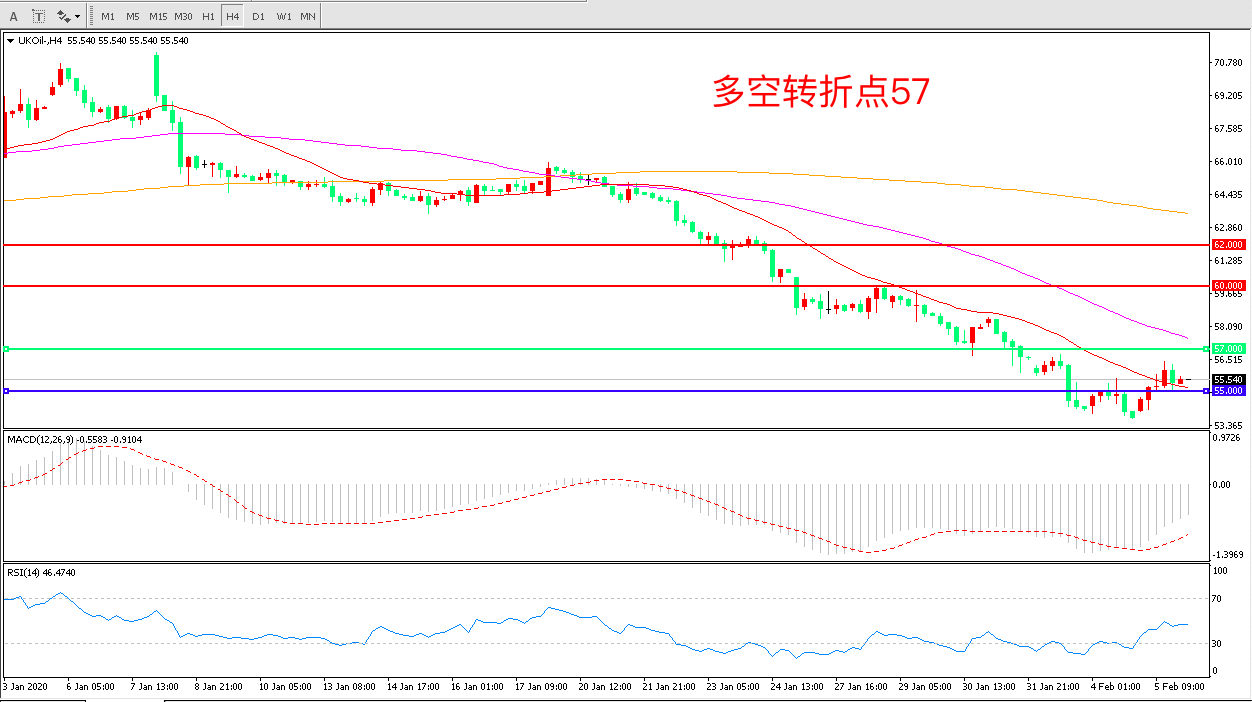 交易策略:在57.00之下看跌,目标55.00 52.00