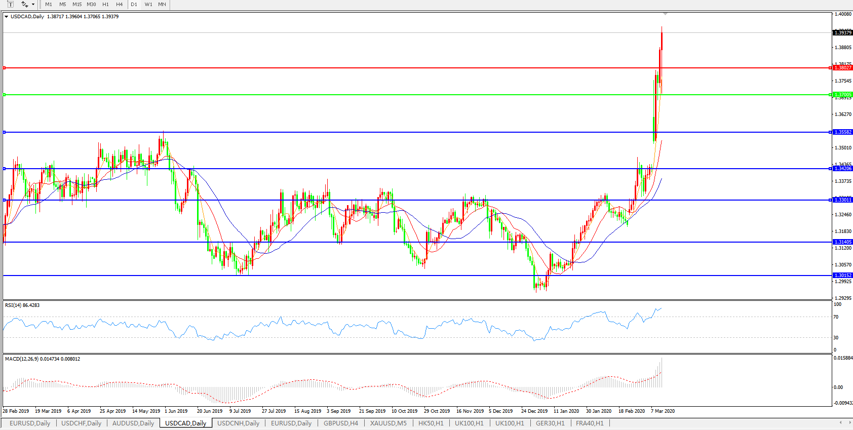 美元兑加元USDCAD    日线图: