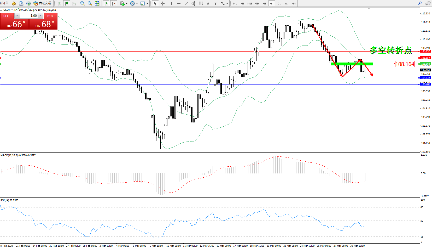 交易策略:108.164下方看跌,目标107.024106.486