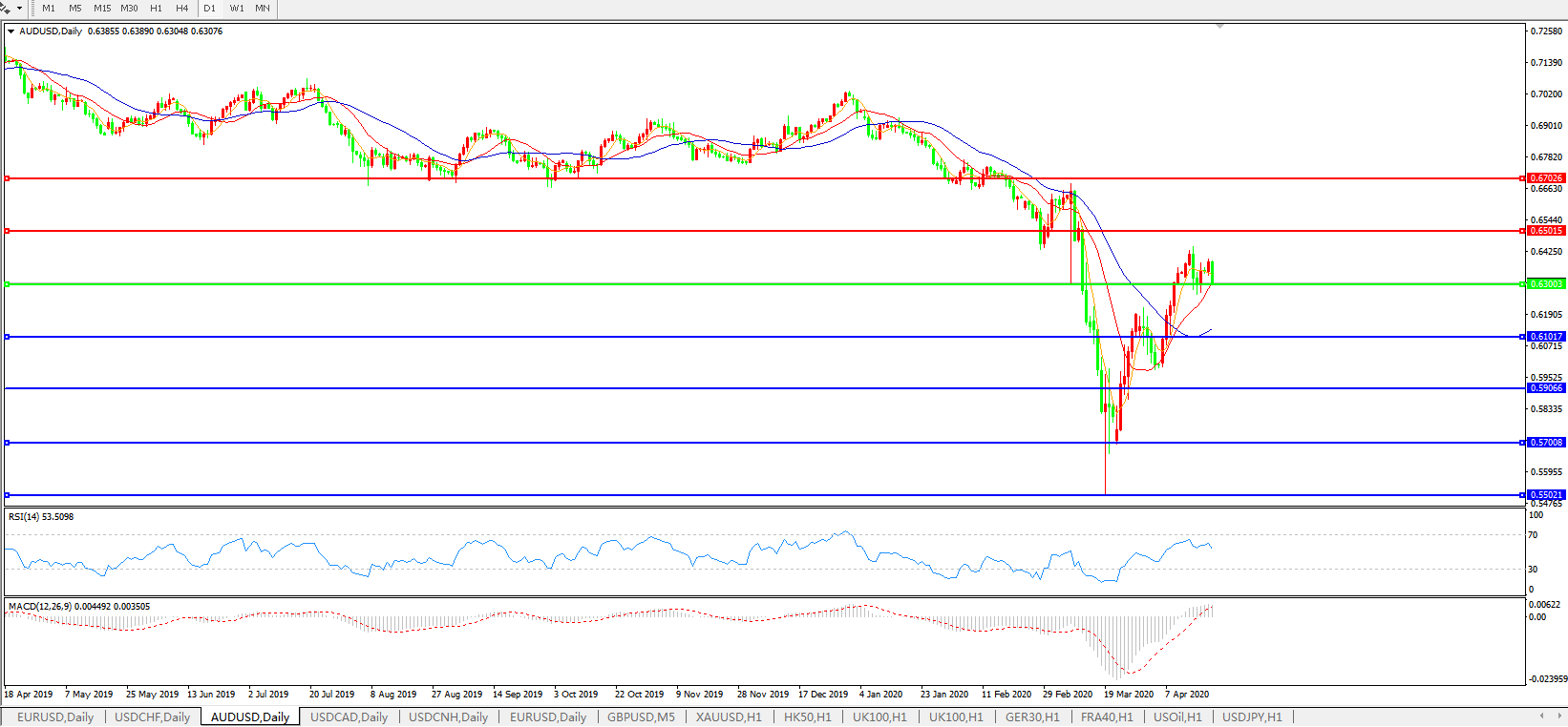 澳元兑美元AUDUSD    日线图: