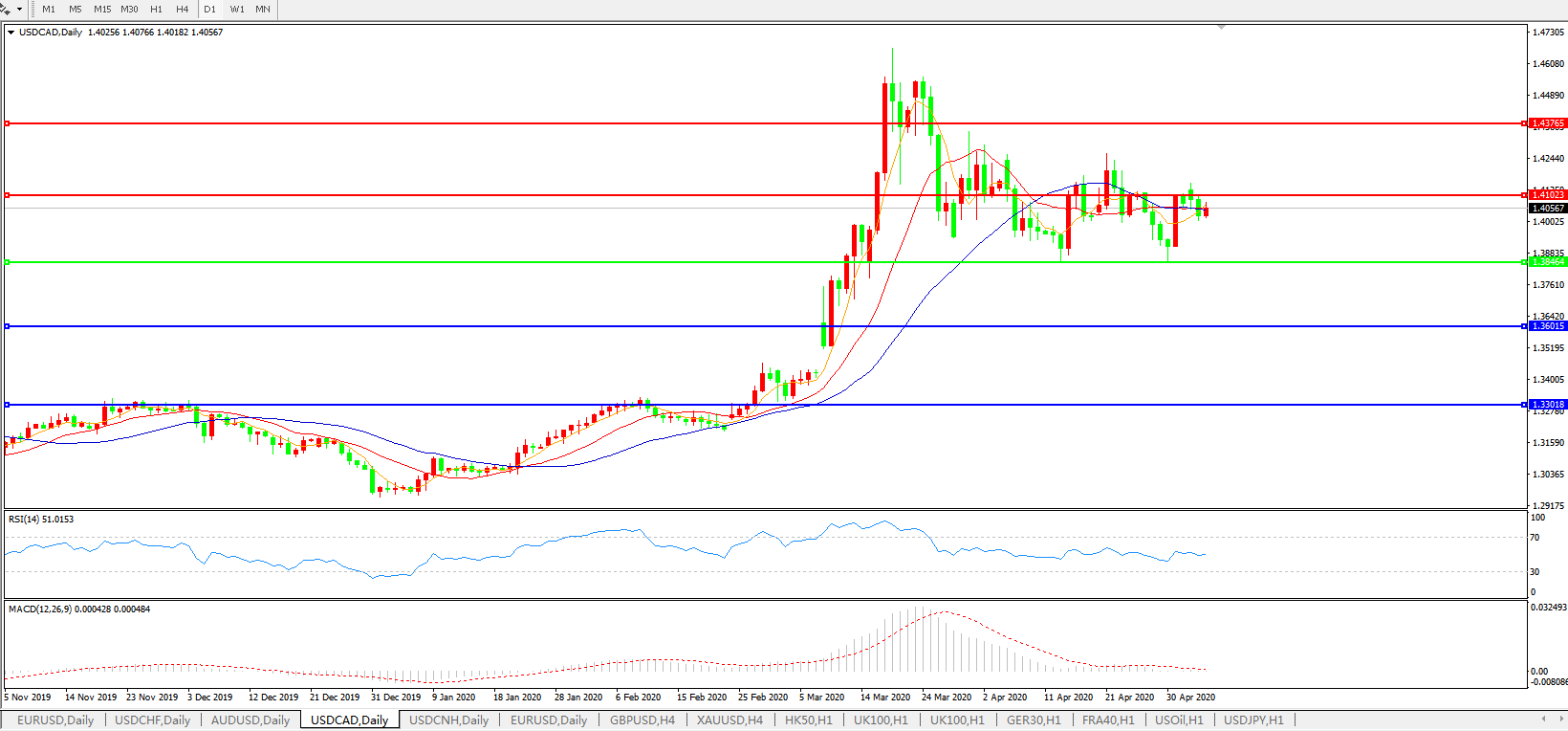 美元兑加元USDCAD    日线图: