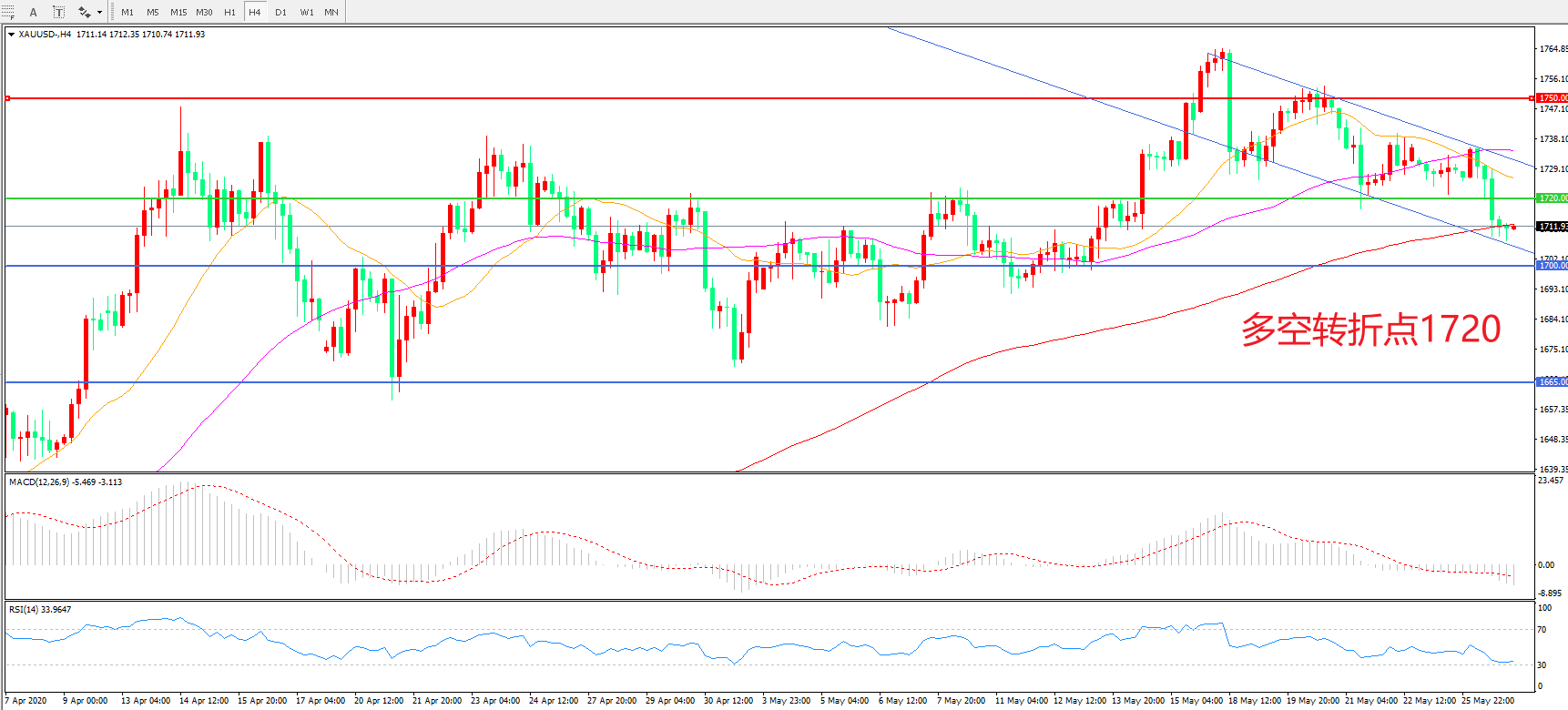 多空转折点:1720.00