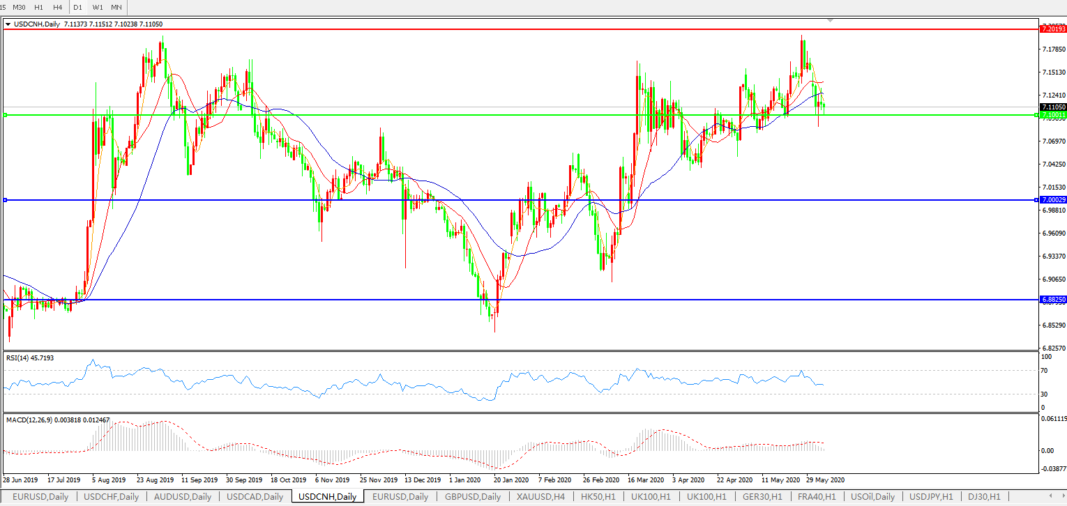 美元兑人民币USDCNH    日线图: