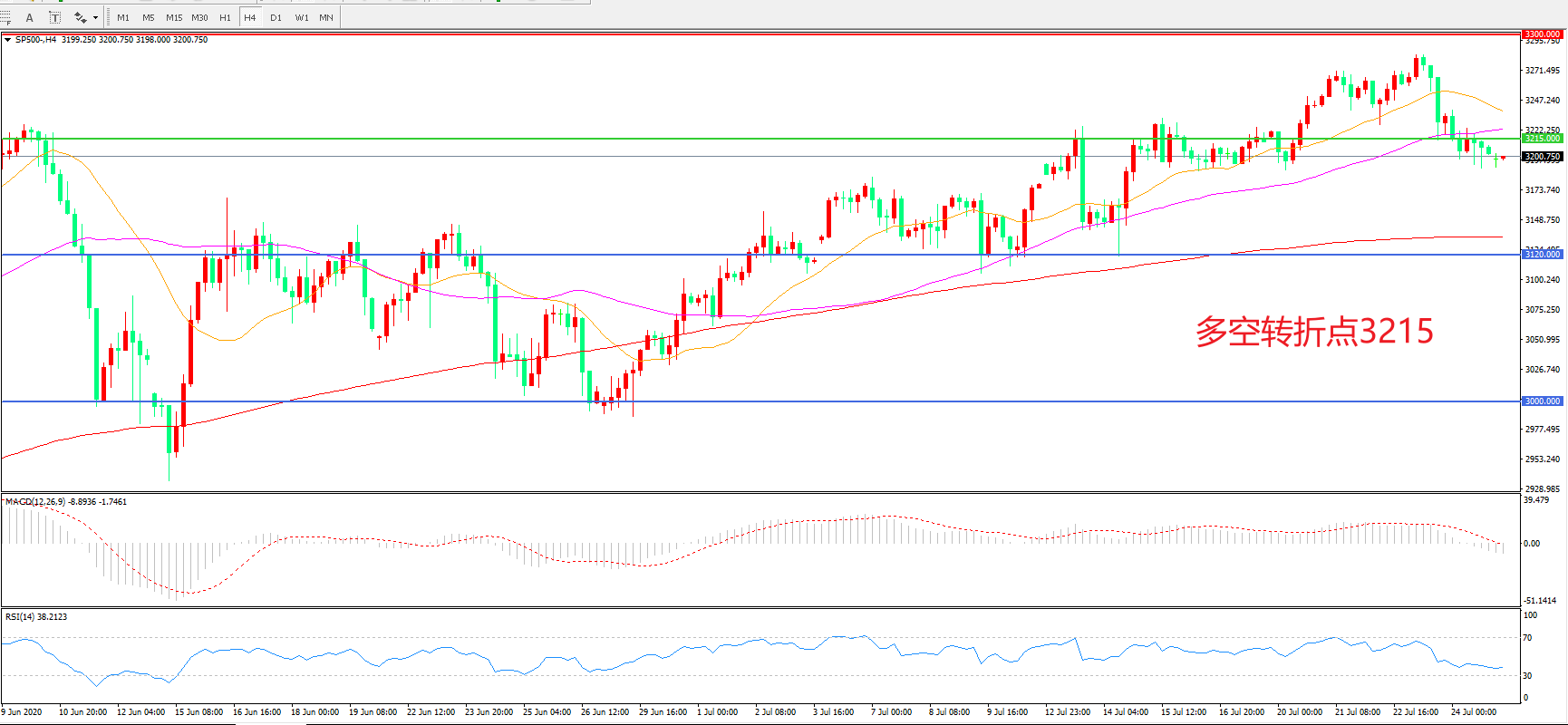 多空转折点:3215.00