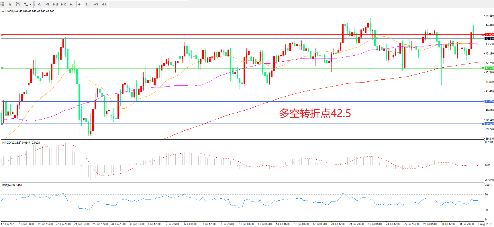 交易策略:  在42.50之上看涨,目标44.00      46.00