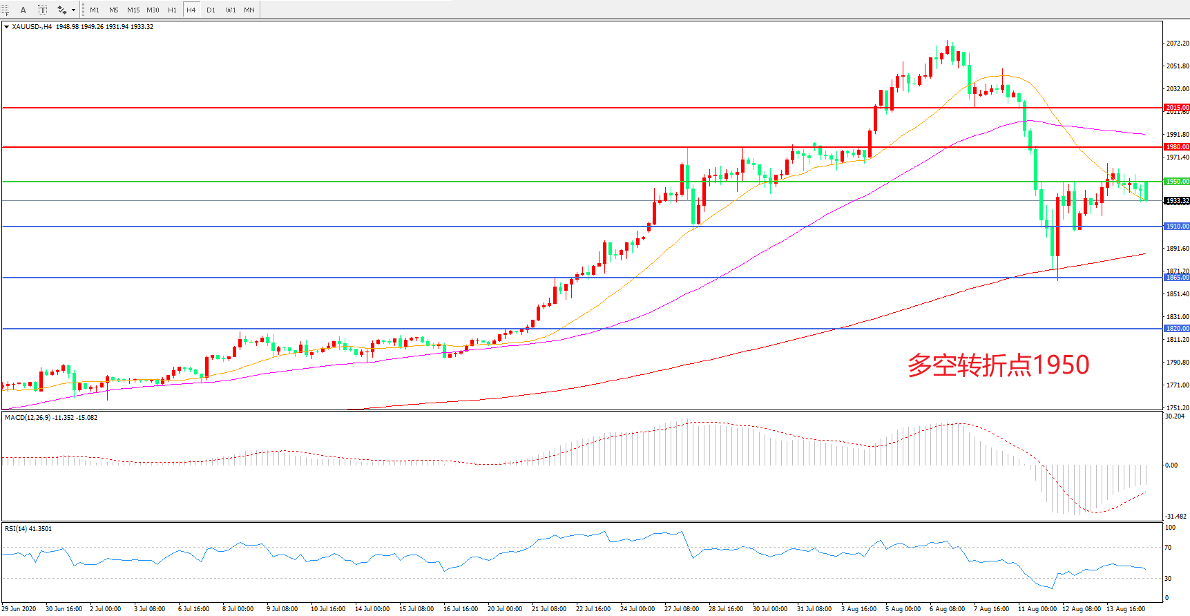 现货黄金XAU/USD 4小时图