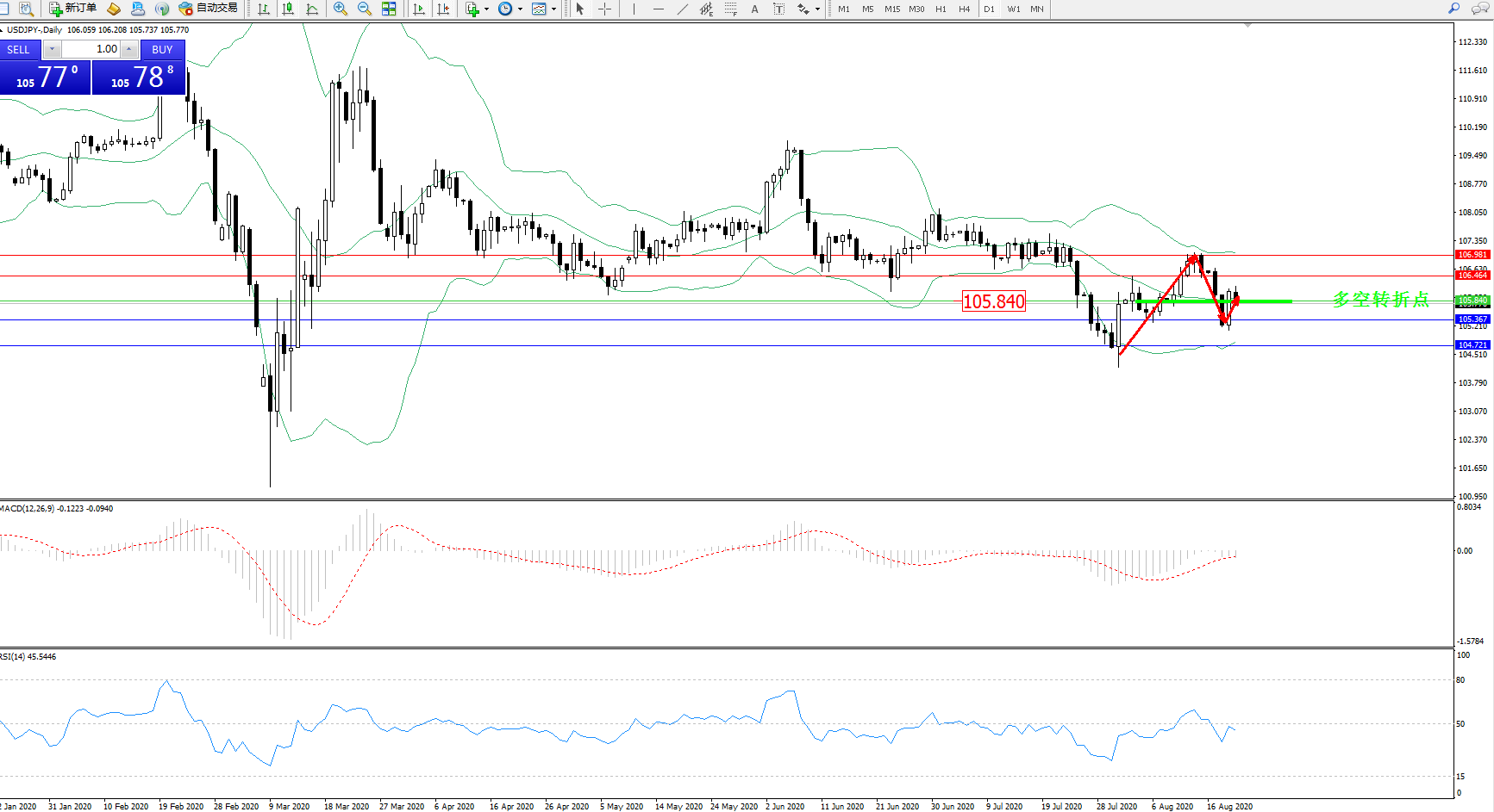 多空转折点:105.840