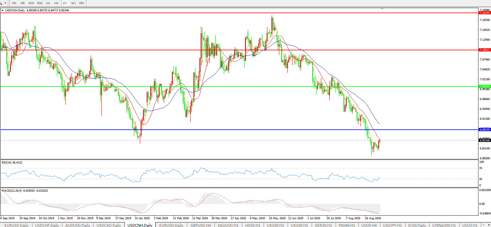 交易策略: 在7.0000之下,看跌,目标价位为6.8800,然后为6.7615。