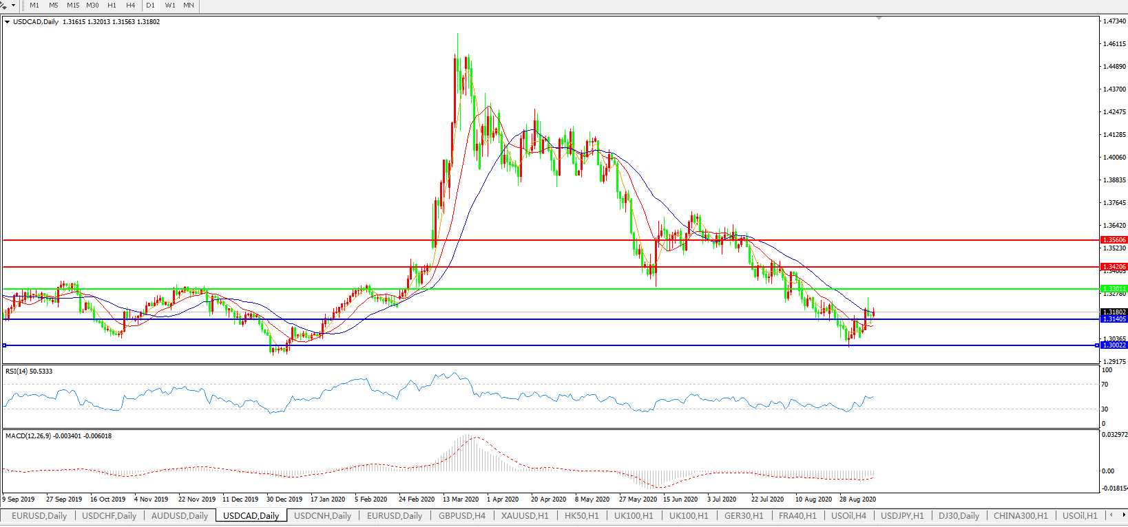 美元兑加元USDCAD    日线图: