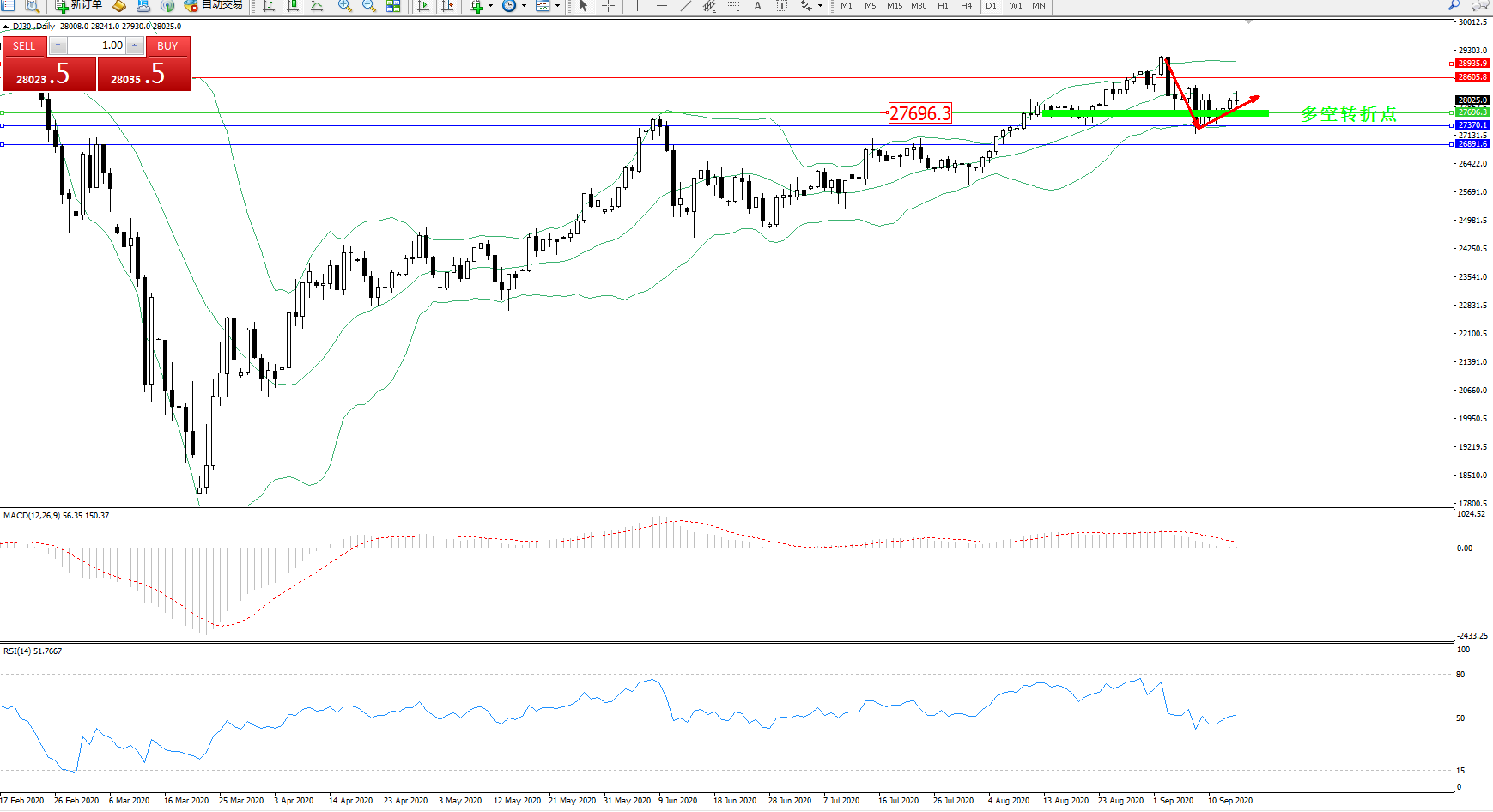 道琼斯指数9月15日(周二)收盘上涨2.30点,涨幅0.01%,报27995.60点。美股三大指数收涨,科技股上涨帮助抵消了金融股尾盘下跌。通讯服务、房地产和可选消费股领涨,摩根大通、花旗集团和美国银行拖累金融股下跌。市场正在试图弄清楚下一步方向,在这个时候,总是会看到波动,一直在试图弄清楚科技股行情是否会持续下去。美联储将在周三结束为期两天的货币政策会议,并发表货币政策声明。市场预计美联储将确认未来三年维持近零利率政策,这一观点可能进一步打压美元。但如果真的升息,可能对美元有利。明天的大新闻将是点阵图预计2023年升息。希望看到的是,美联储预计2023年不会加息。如果预计2023年升息,股市和大宗商品将遭抛售,美元将上扬。