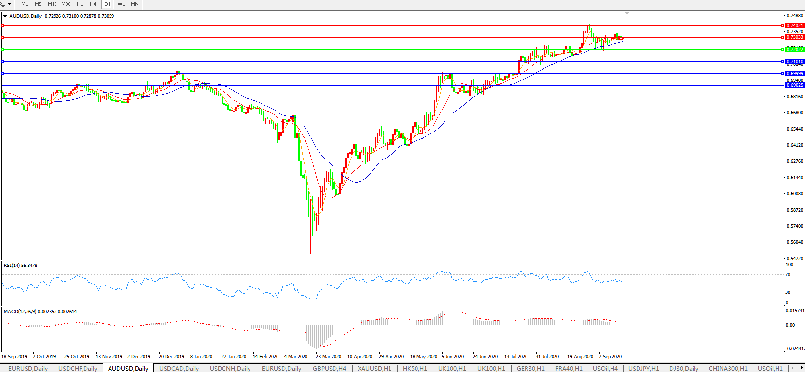 压制位:0.7300 0.7400