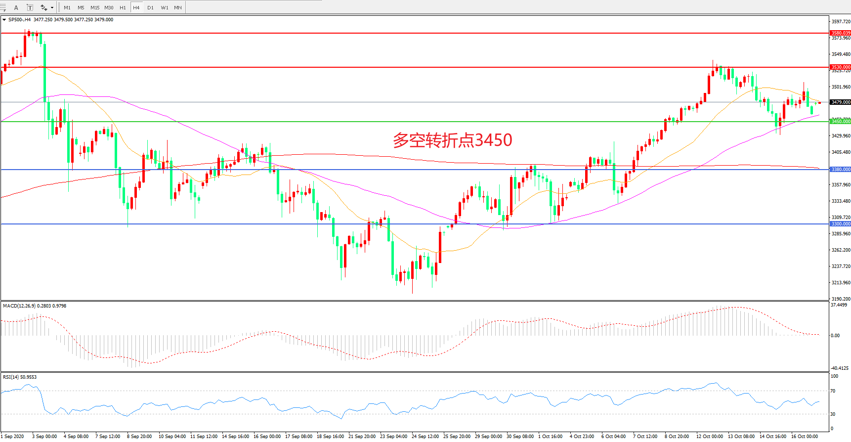 多空转折点:3450.00