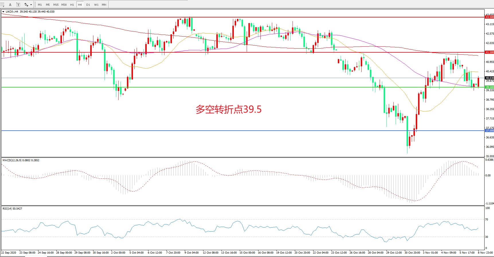 交易策略:  在39.50  之上看涨,目标41.50       43.50