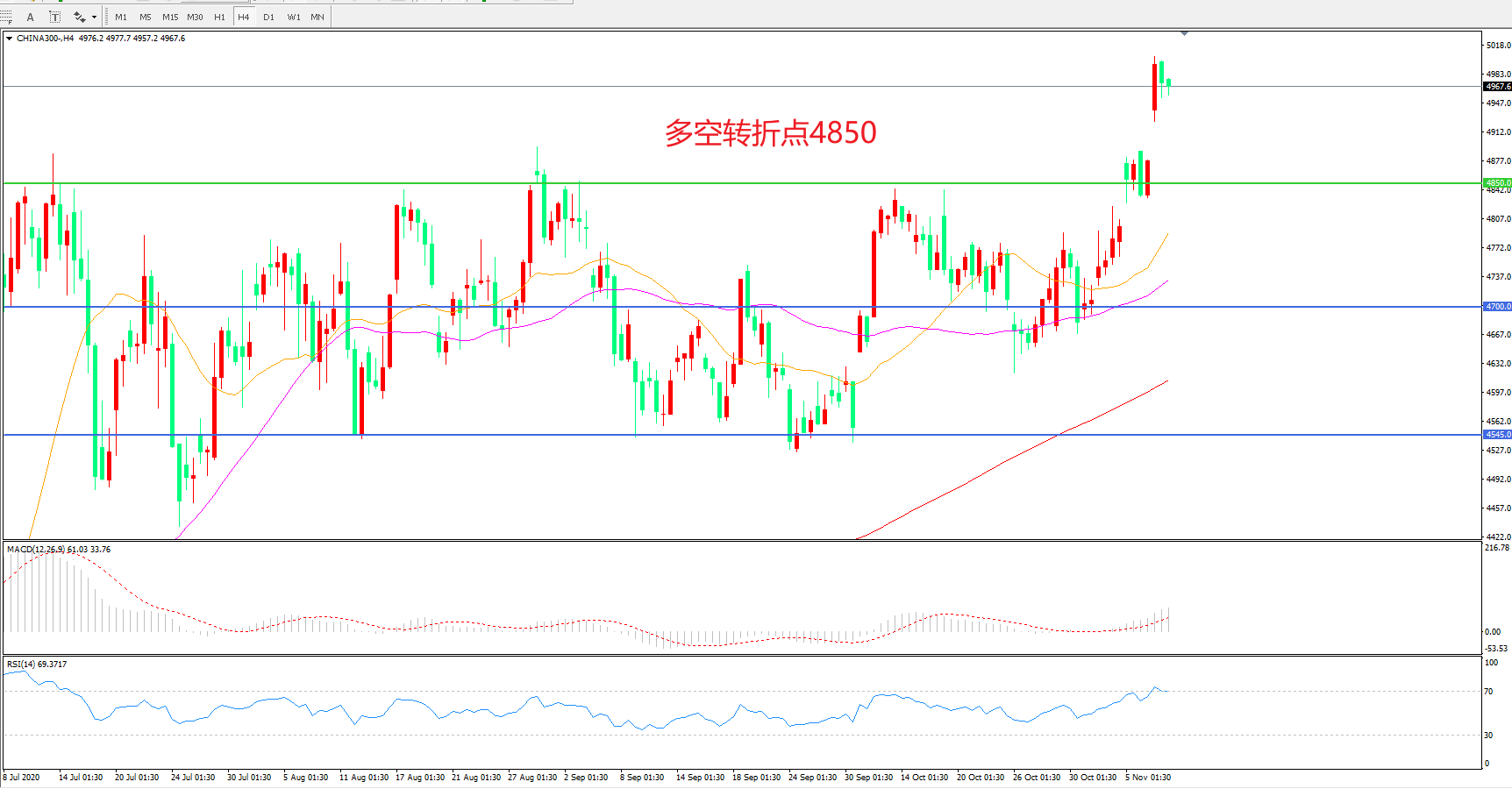 多空转折点:4850.00