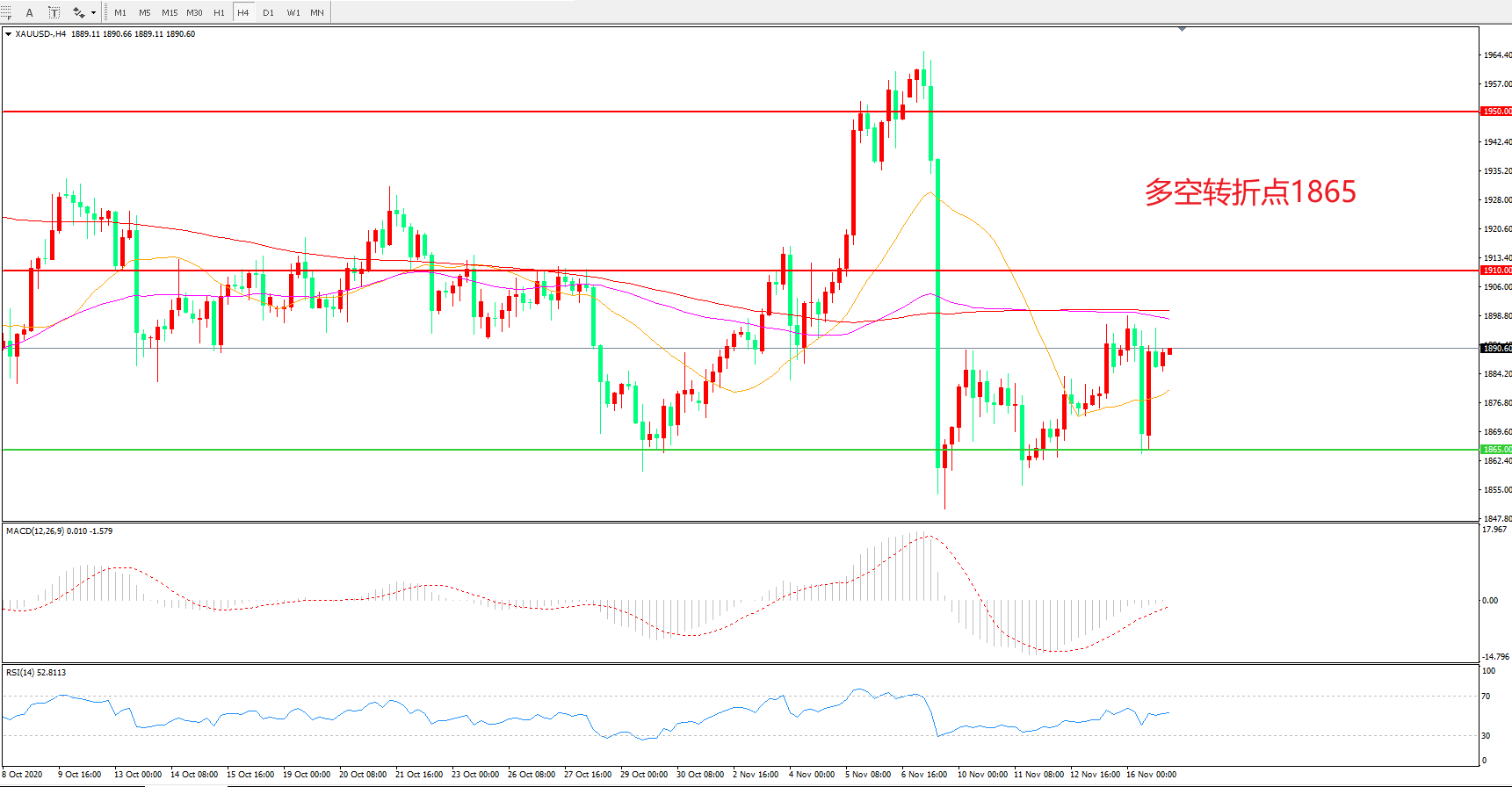 多空转折点:1865.00