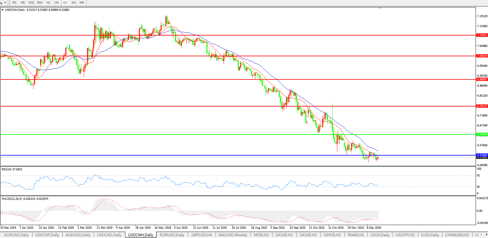 交易策略: 在6.6265之下,看跌,目标价位为6.5286,然后为6.3500。