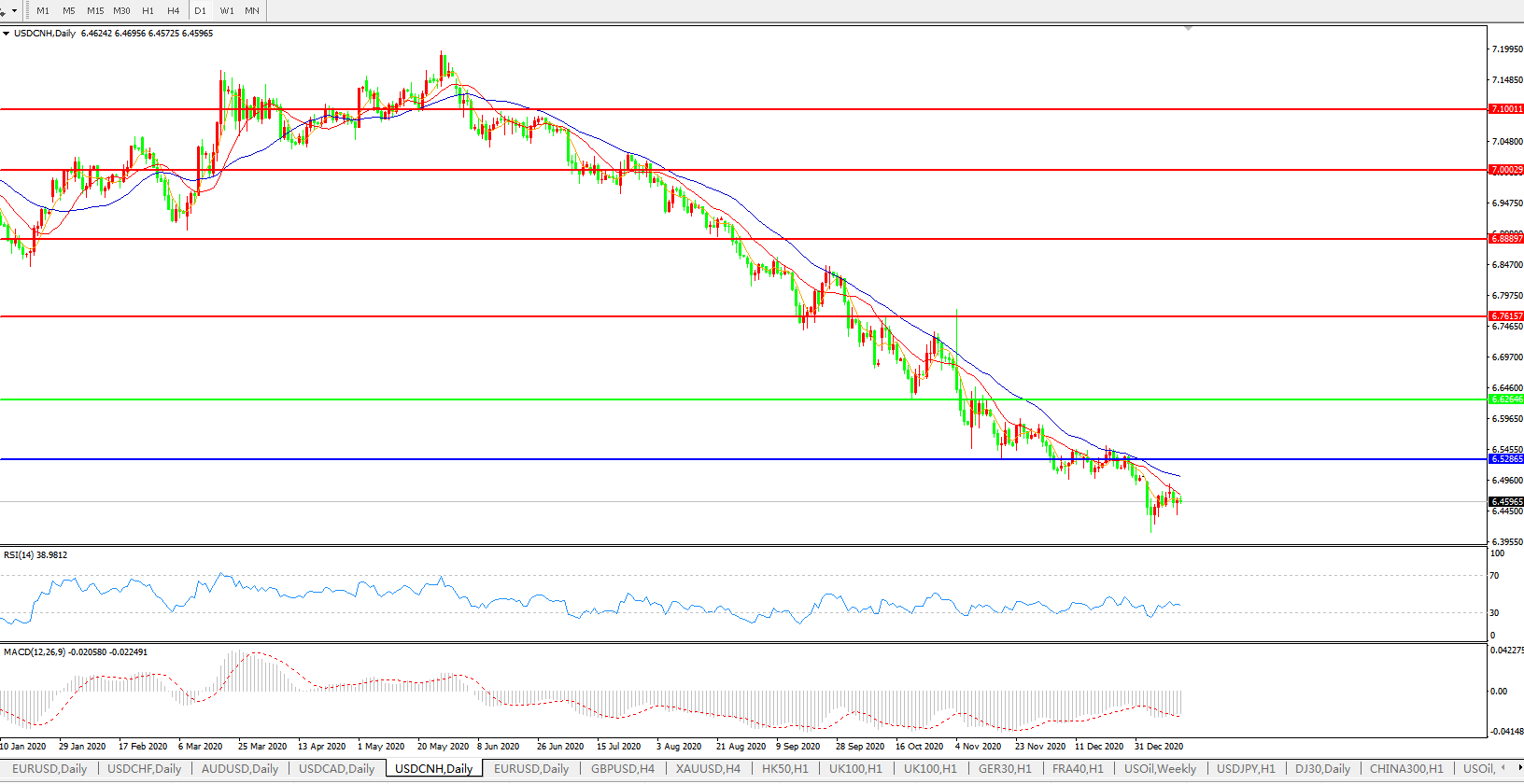 美元兑人民币USDCNH 日线图: