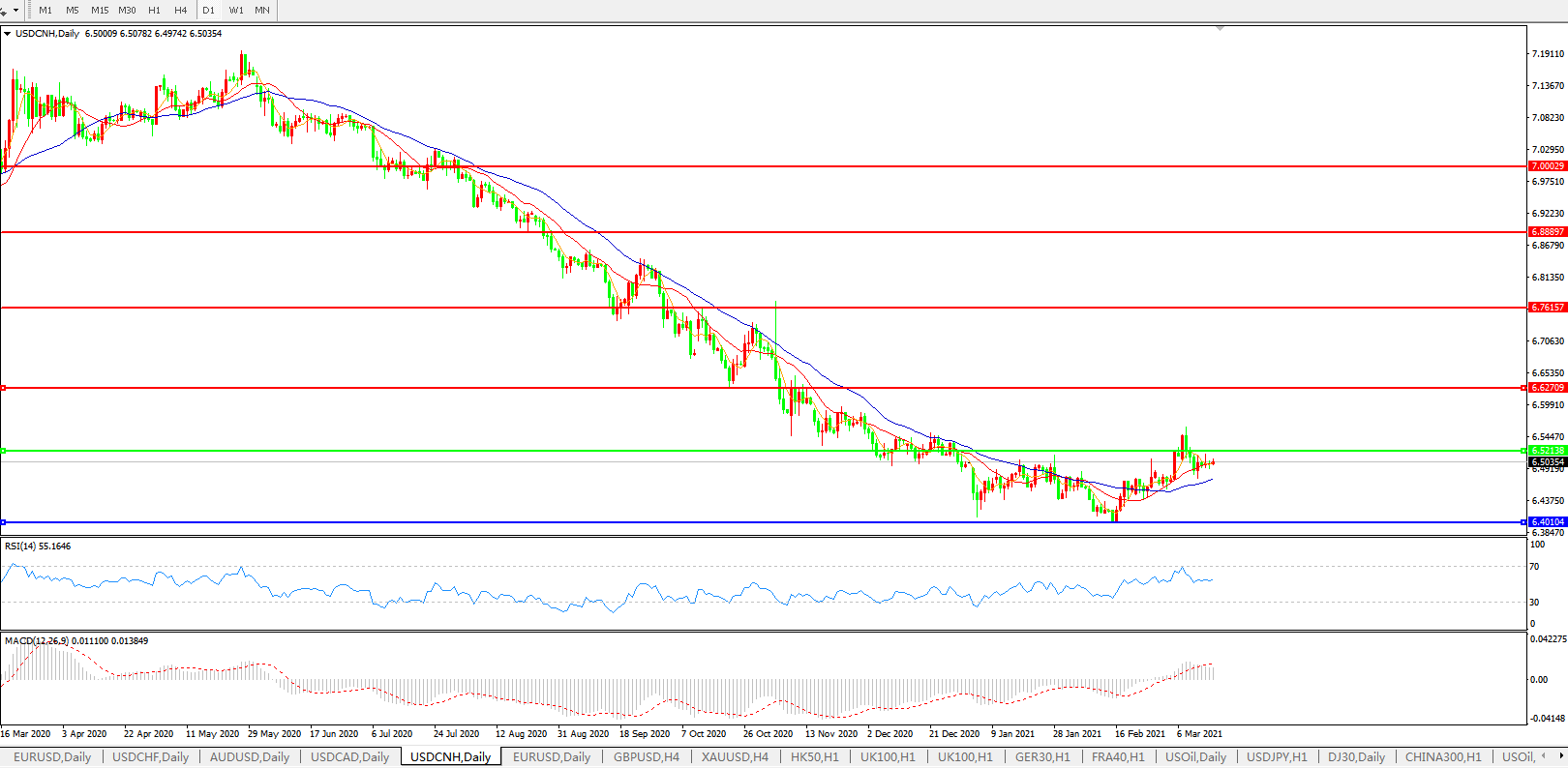 交易策略: 在6.5200之下,看跌,目标价位为6.4000,然后为6.2000