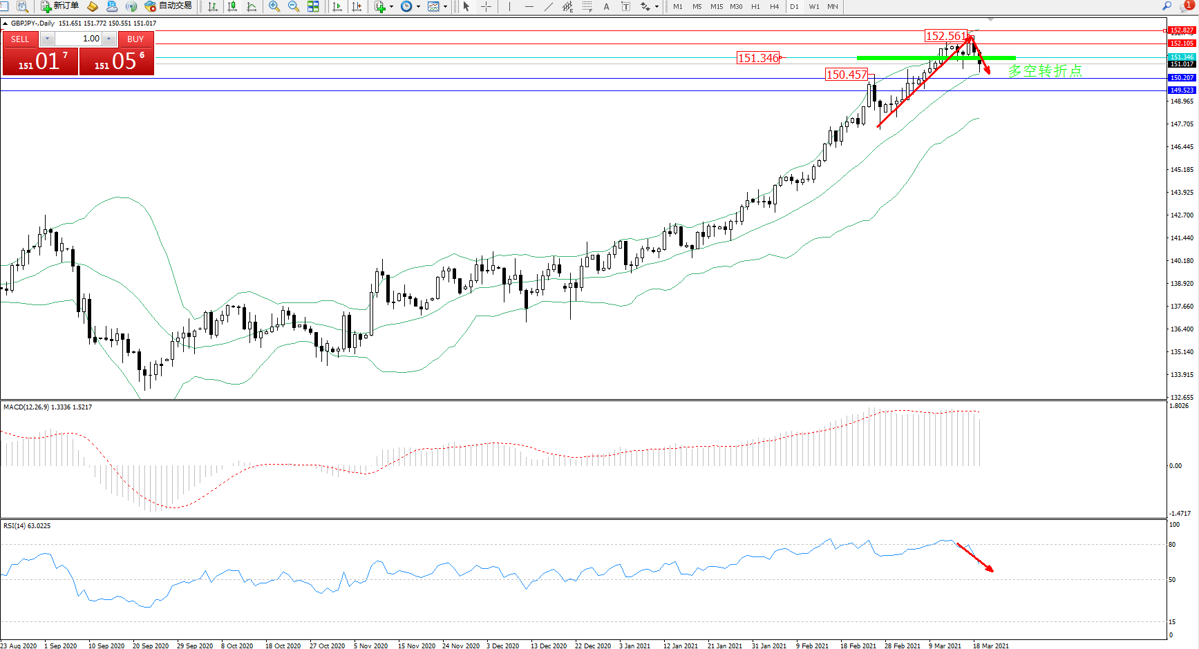 技术点评:多头动力延续布林带指标通道中上轨区间持续震荡上扬,高位抵达152.561位置节点遇阻后震荡下行,触及中轨附近节点后开始震荡,短期或继续向下移动,布林带指标呈上行趋势走势持续,MACD指标处于多头区域高位整理平移后有下移迹象,RSI指标高位空头动力维持震荡下行持续中;