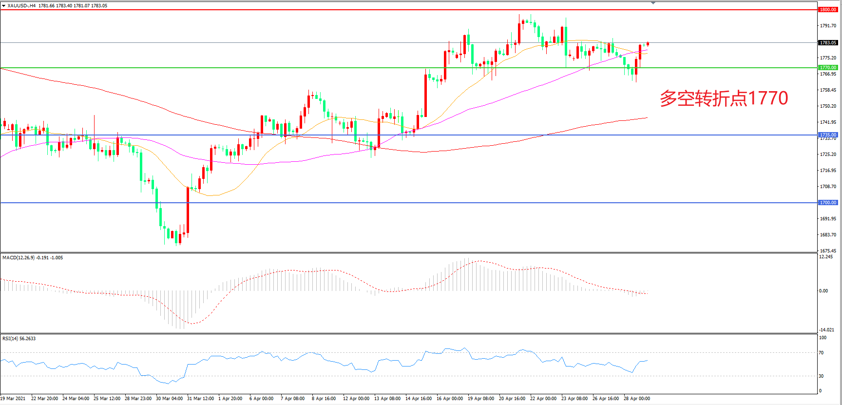 多空转折点:1770.00