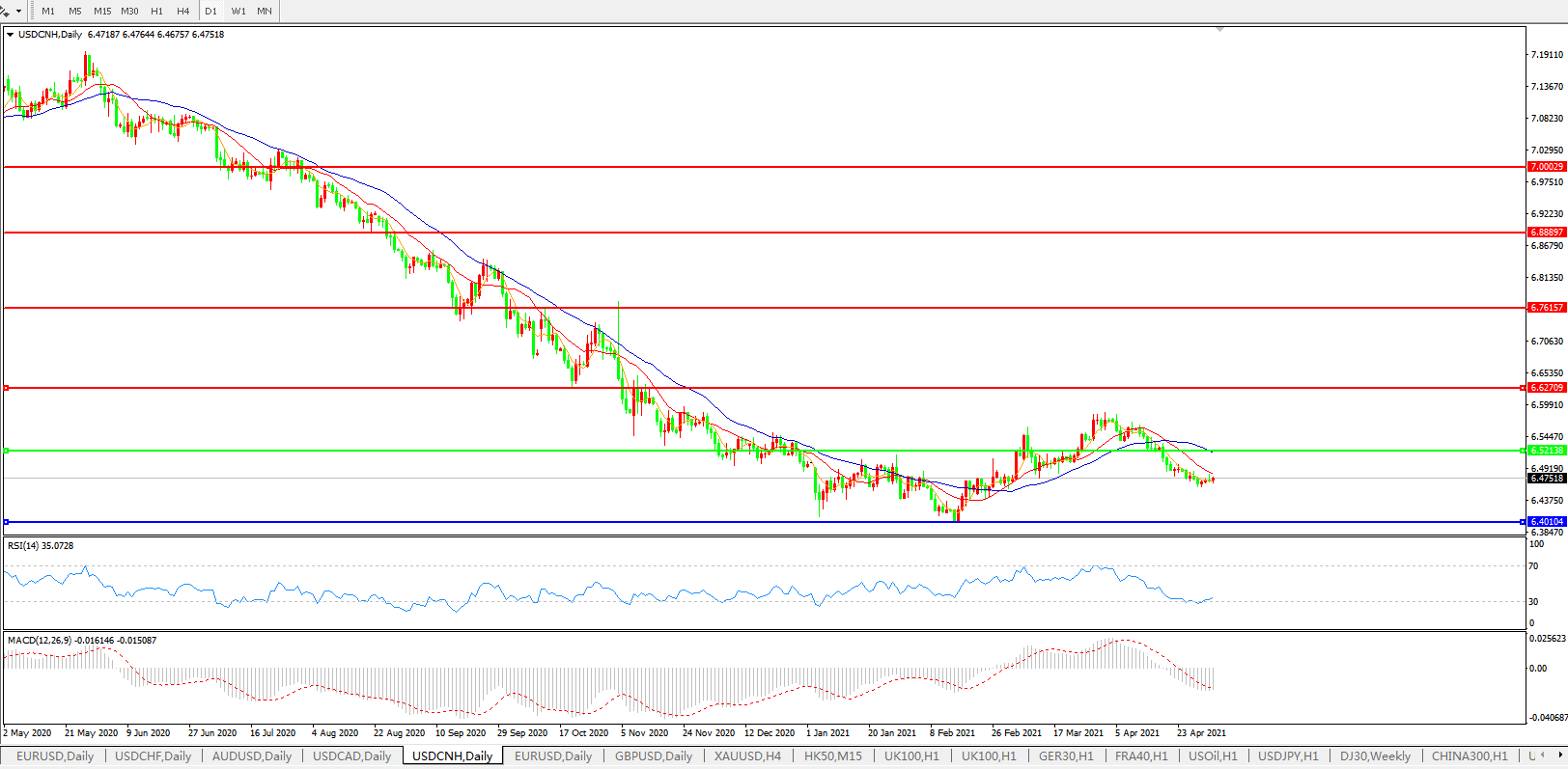 美元兑人民币USDCNH 日线图: