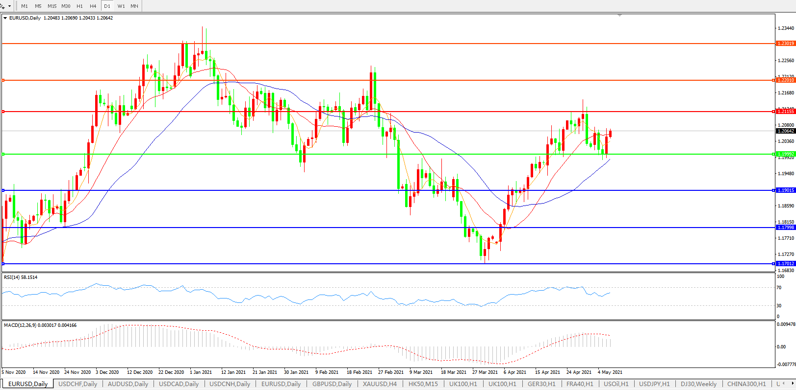 欧元兑美元EURUSD   日线图: