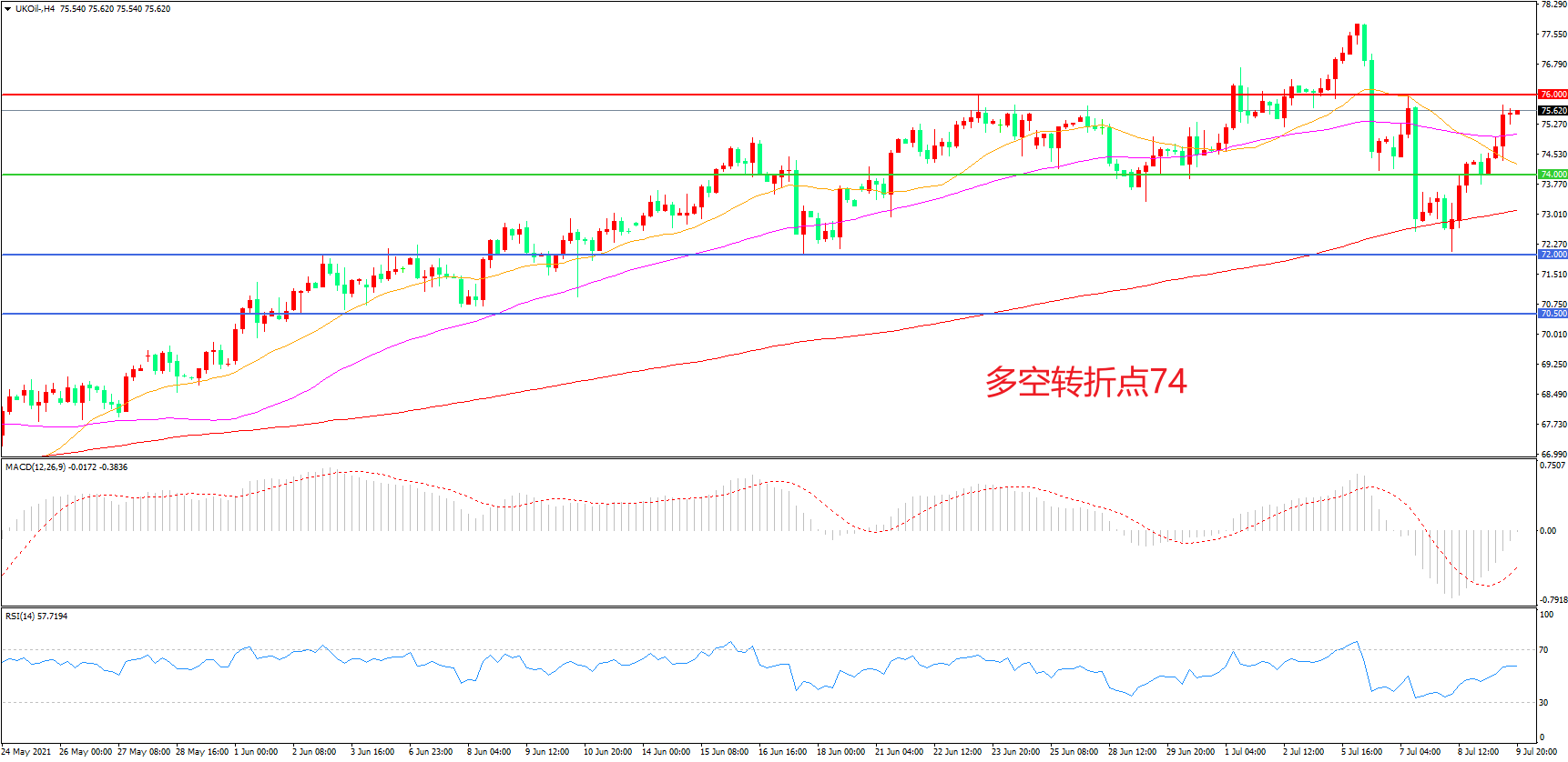 多空转折点:74.00