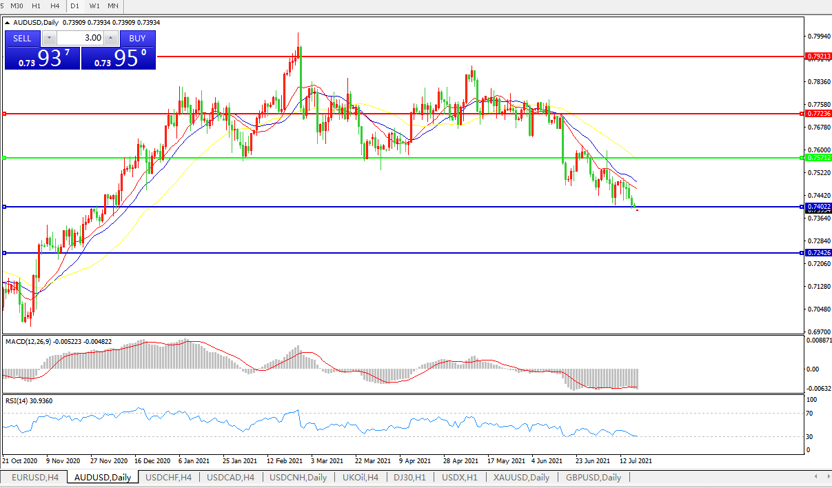 交易策略:0.7570下方看跌,目标0.7400、0.7240