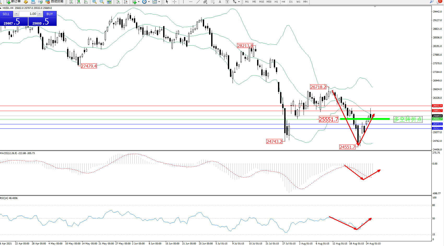 恒指HK50 ——4小时K线图显示: