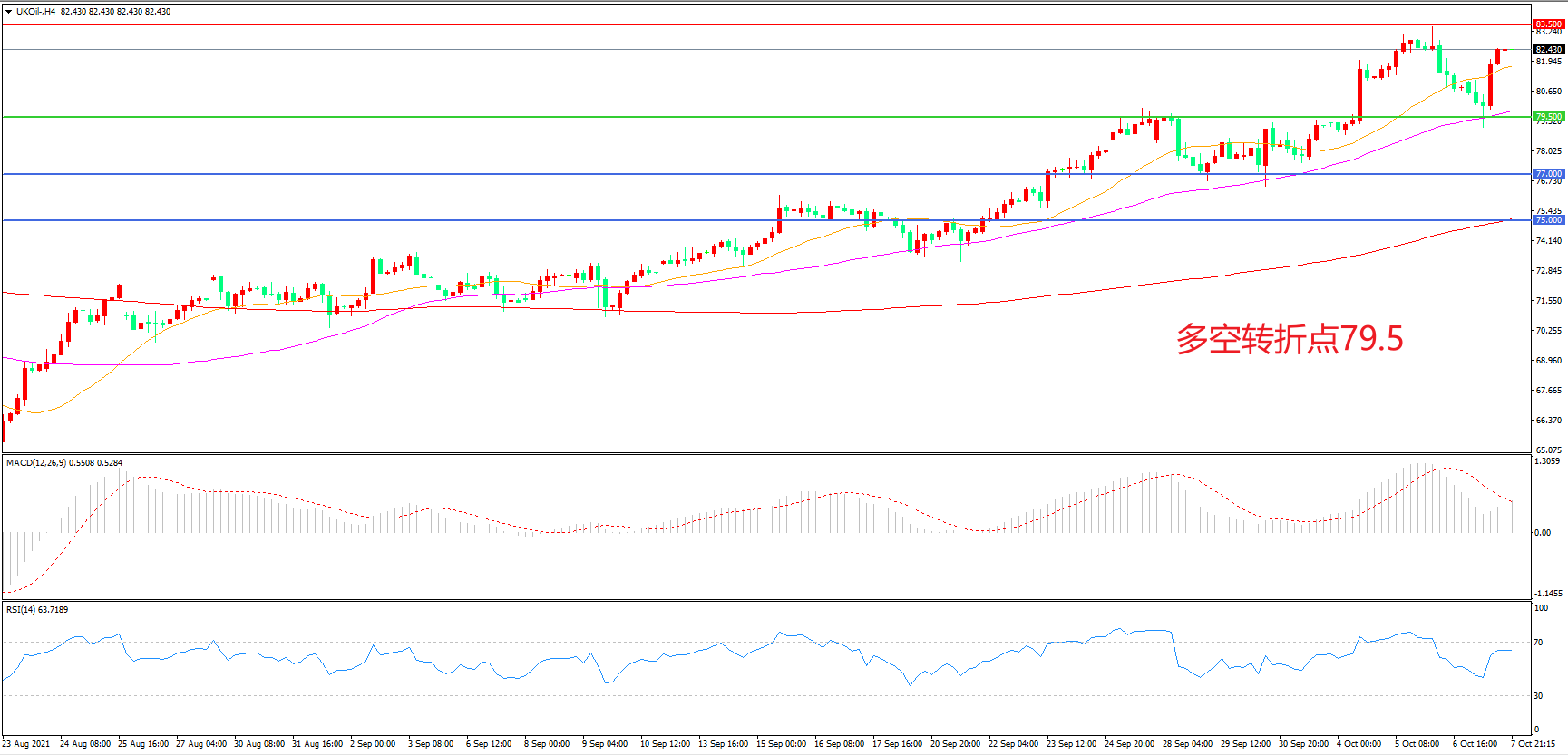 交易策略:在79.50之上看涨,目标83.50 86.00
