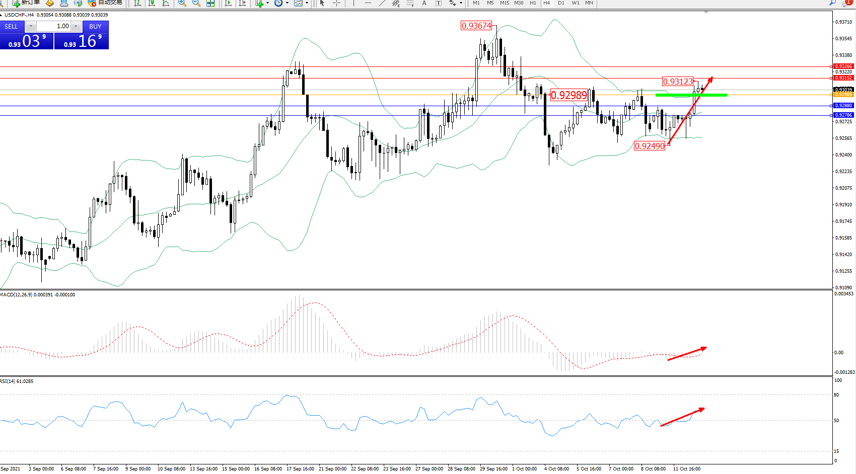 备选策略:0.92989上方看涨,目标0.93152、0.93266