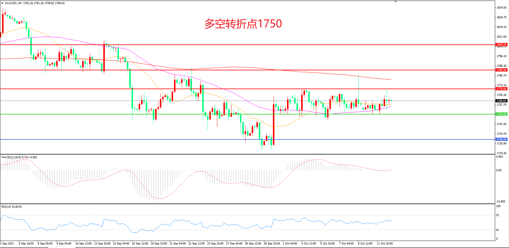多空转折点:1750.00