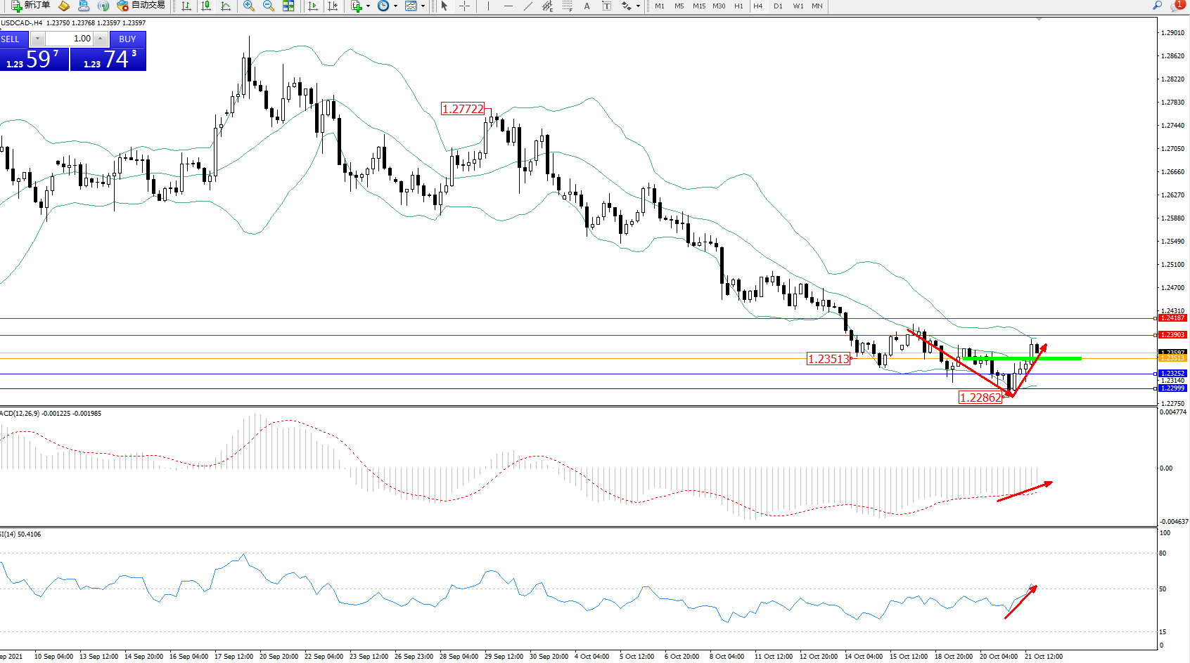 备选策略:1.23513下方看跌,目标1.23252、1.22999