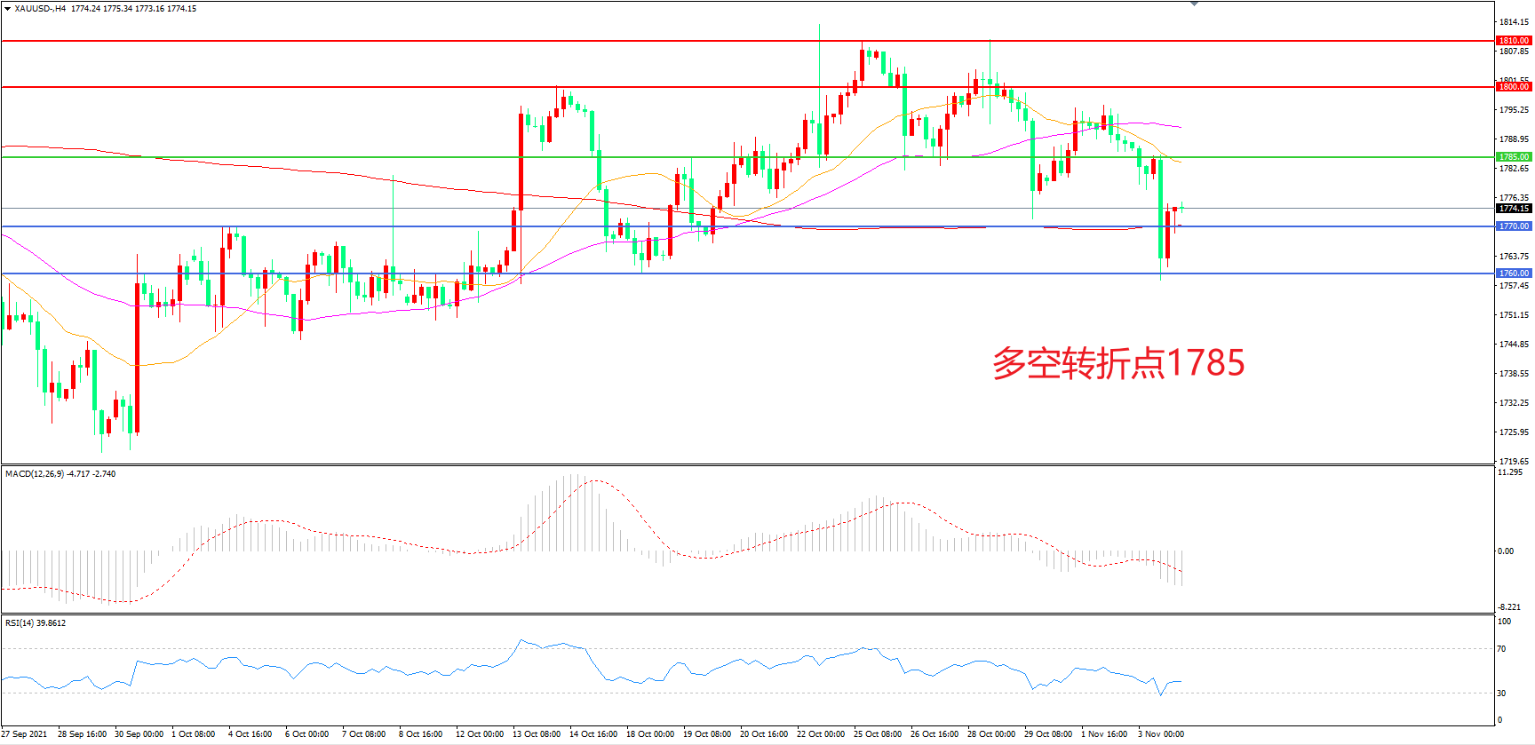 多空转折点:1785.00