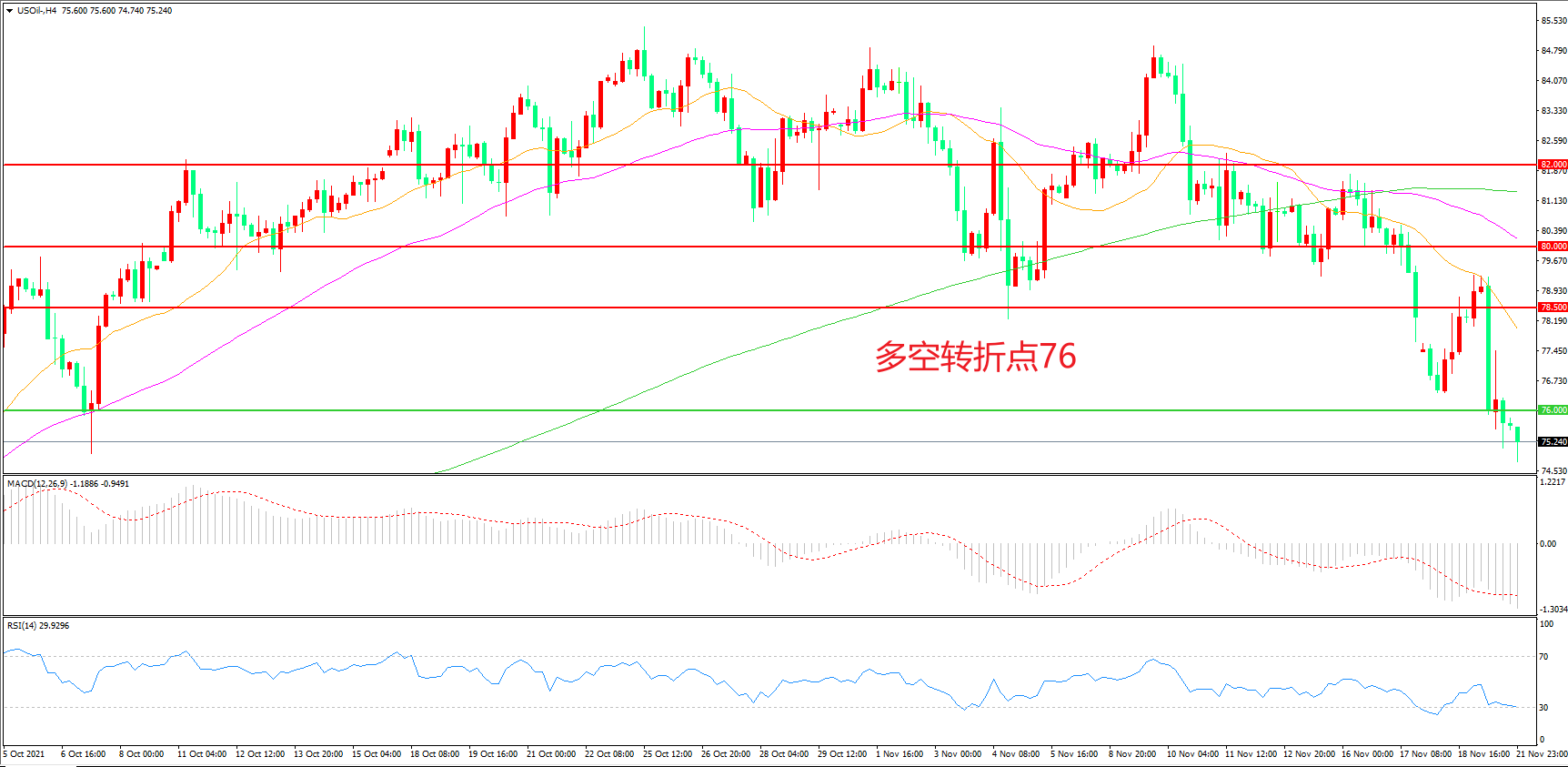 美国原油USOIL     4小时图
