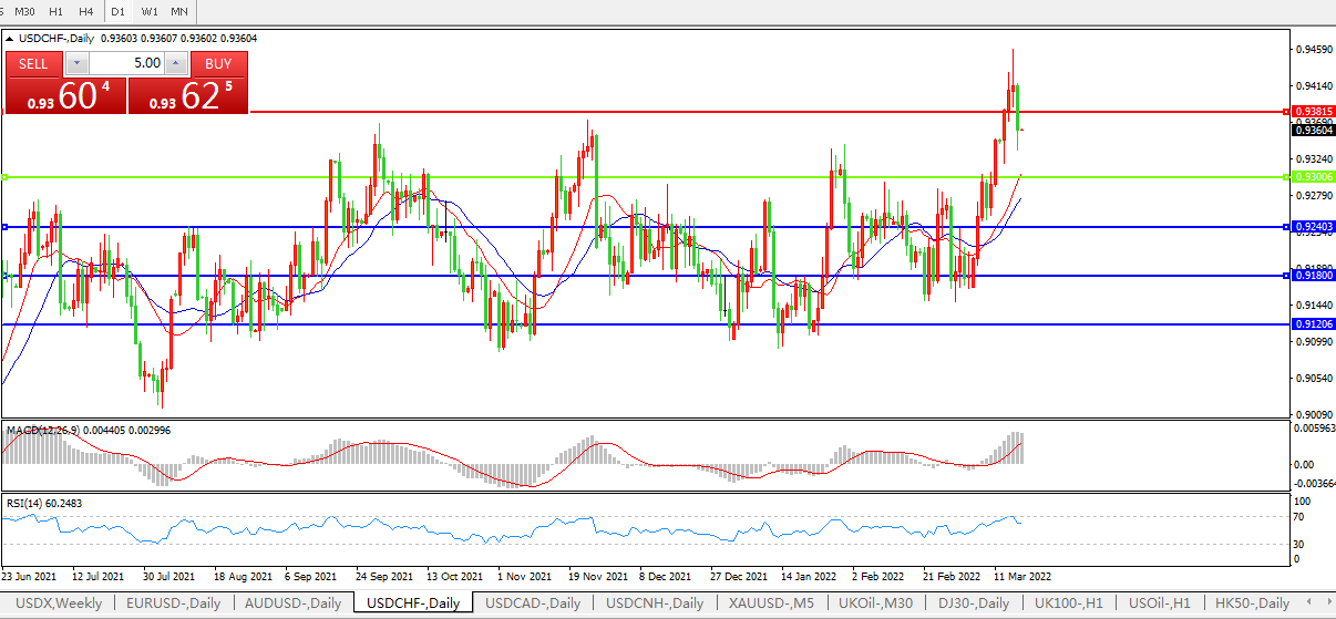 USDCHF USDCAD投资者密切关注俄乌合谈,美元兑瑞郎冲高回落