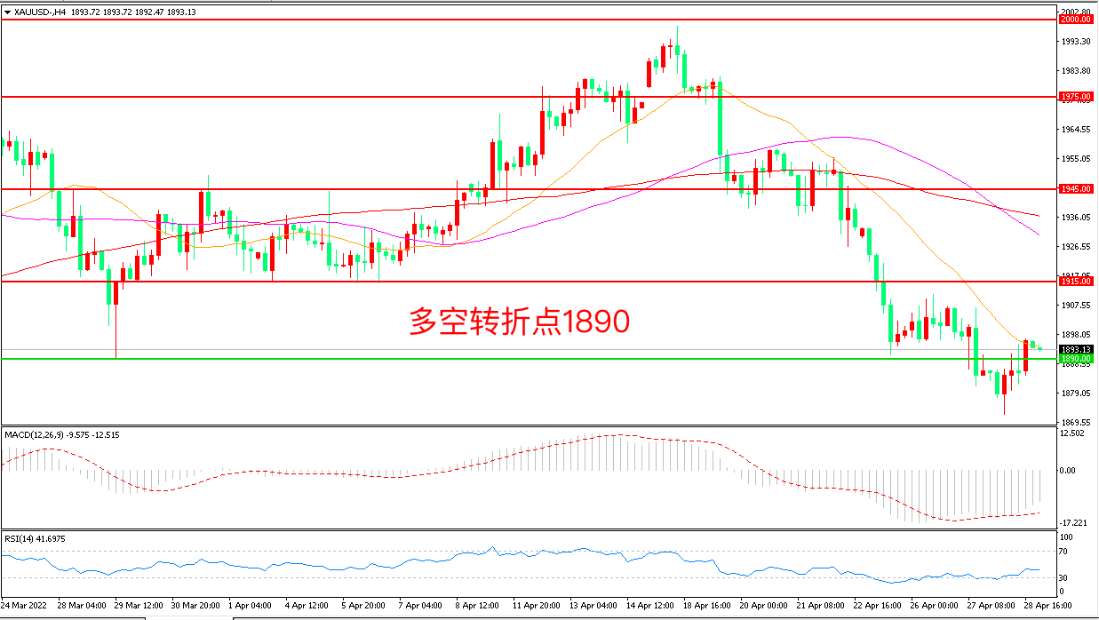 备选策略:在1890.00之下看跌,目标1865.00 1840.00