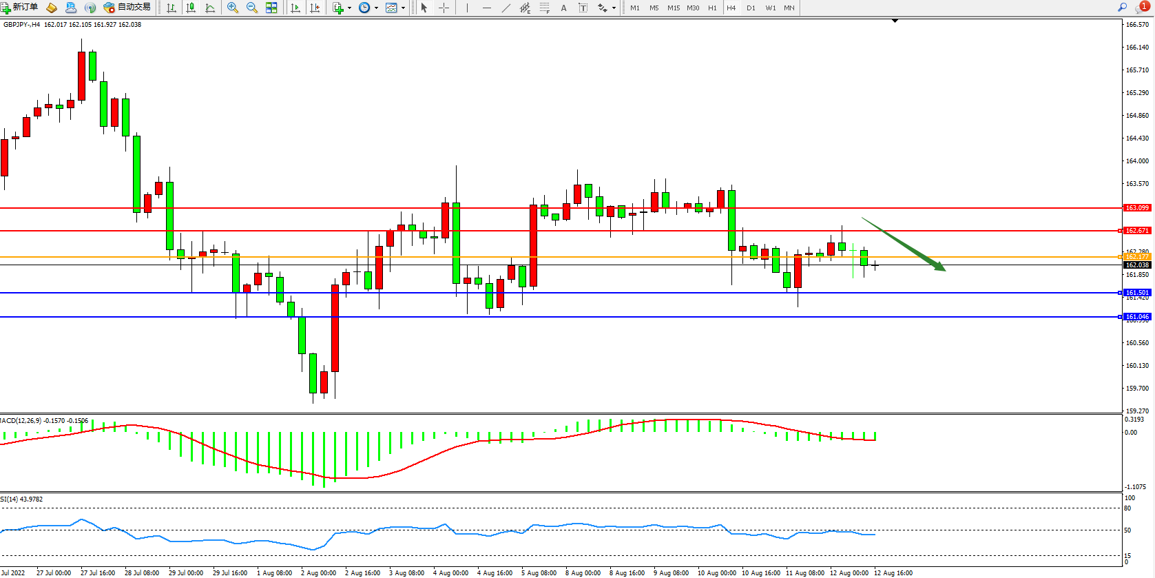交易策略:162.177下方看跌,目标161.501、161.046
