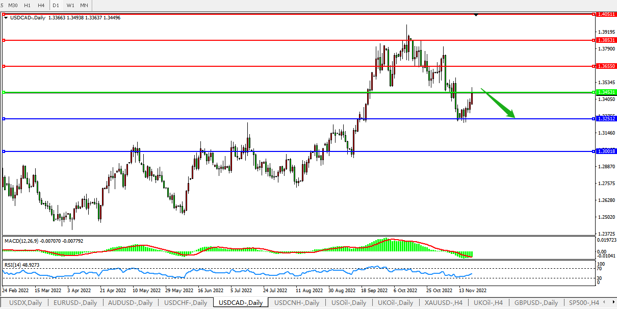 交易策略:在1.3450之下看跌,目标价位为1.3250、1.3000