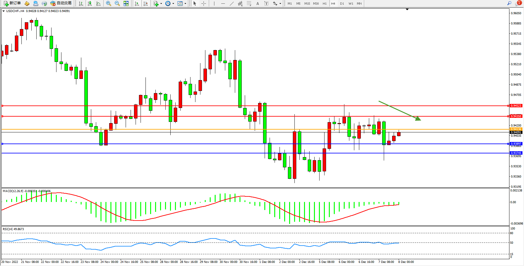 美元瑞郎USDCHF——4小时K线图显示: