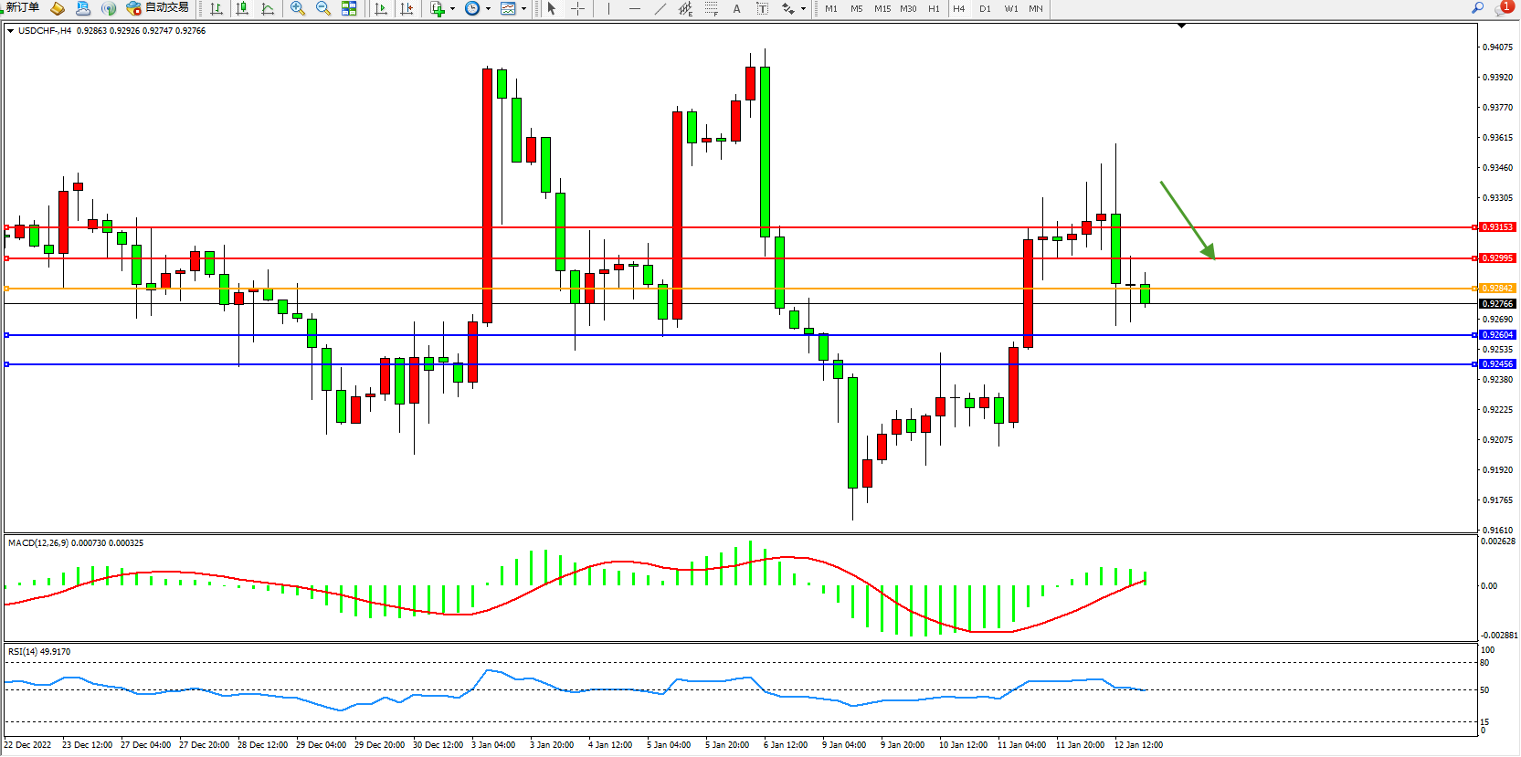 美元瑞郎USDCHF——4小时K线图显示: