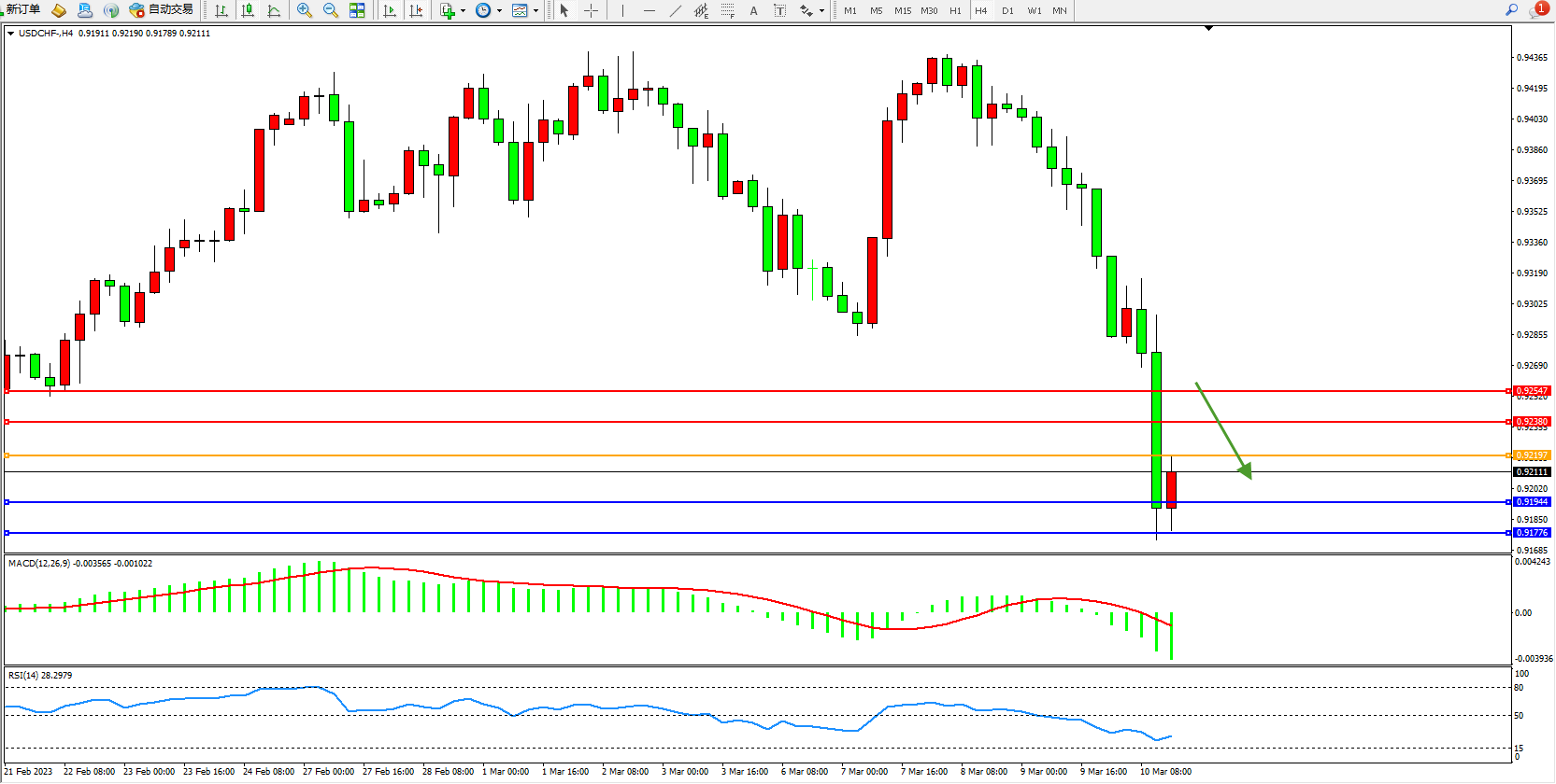 美元瑞郎USDCHF——4小时K线图显示:
