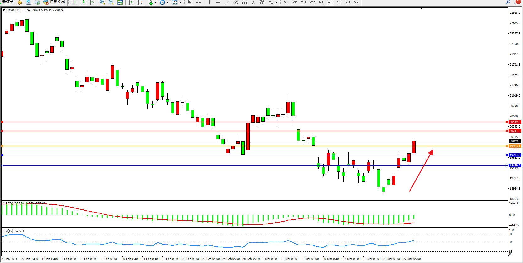 恒指HK50 4小时图