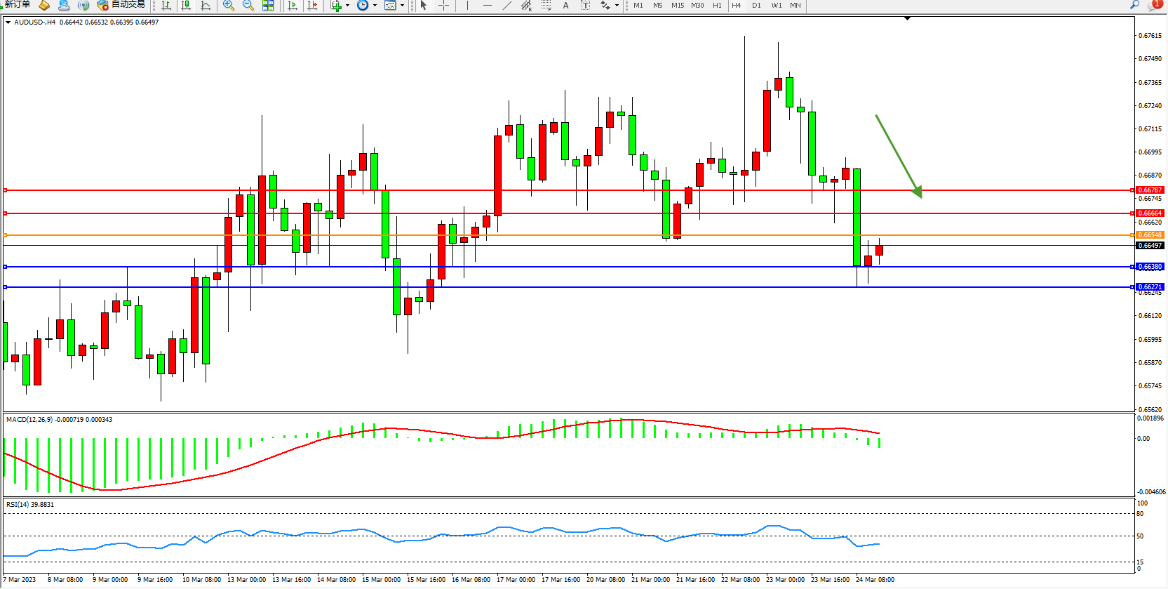 交易策略:0.66548下方看跌,目标0.66380 0.66271