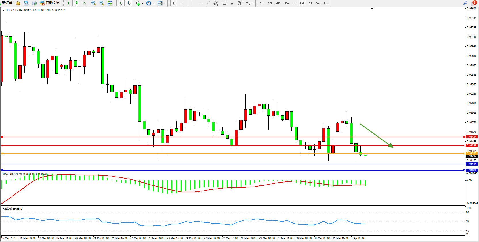 美元瑞郎USDCHF——4小时K线图显示: