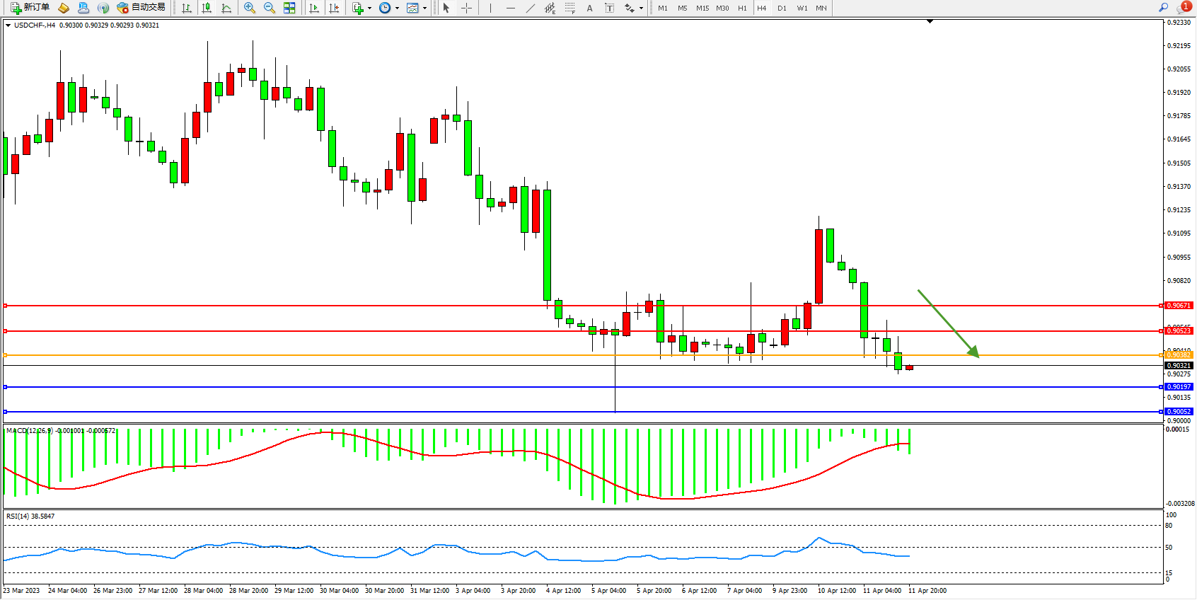 备选策略:0.90382上方看涨,目标0.90523  0.90671