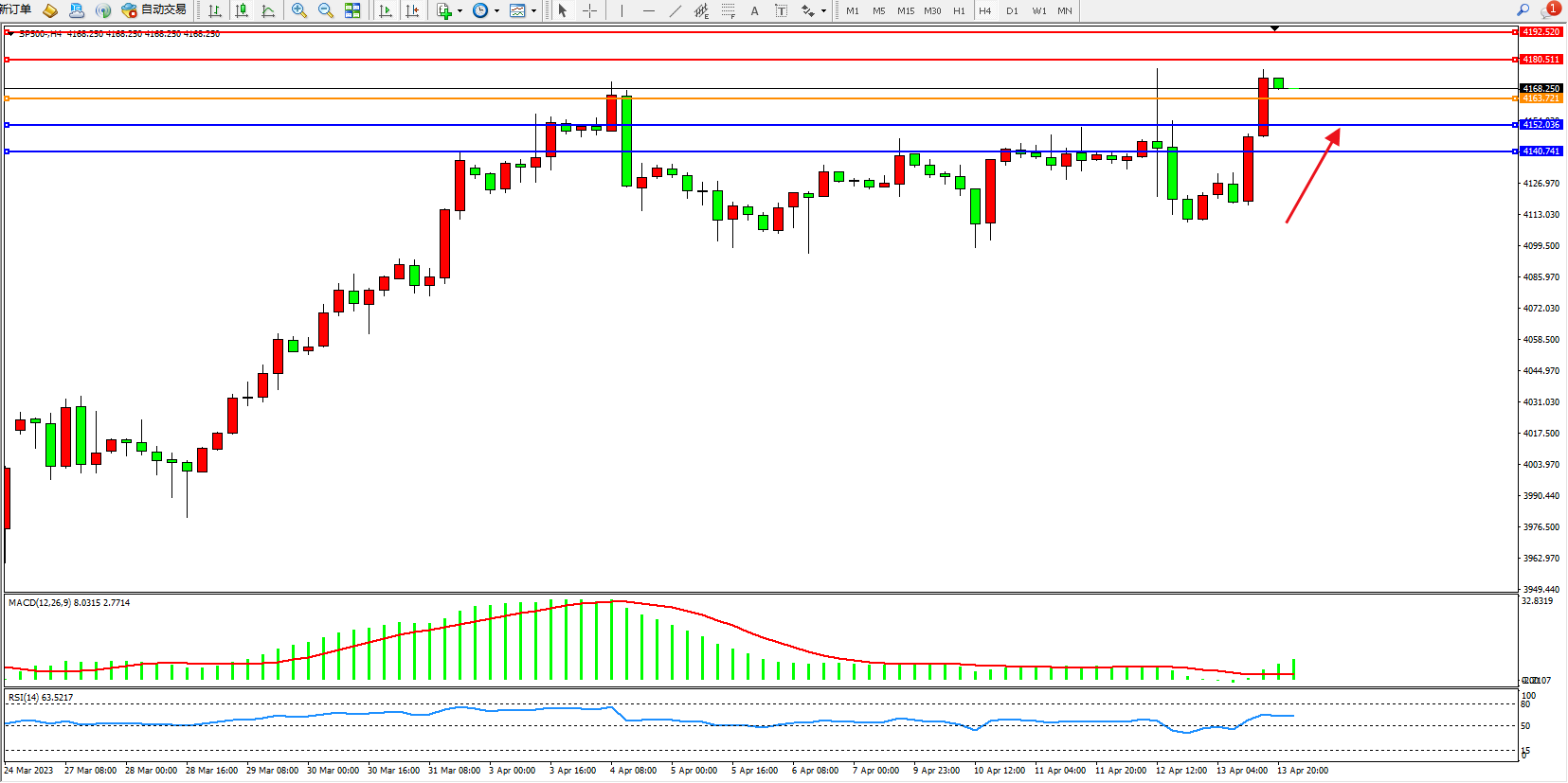 标普SP500——4小时K线图显示: