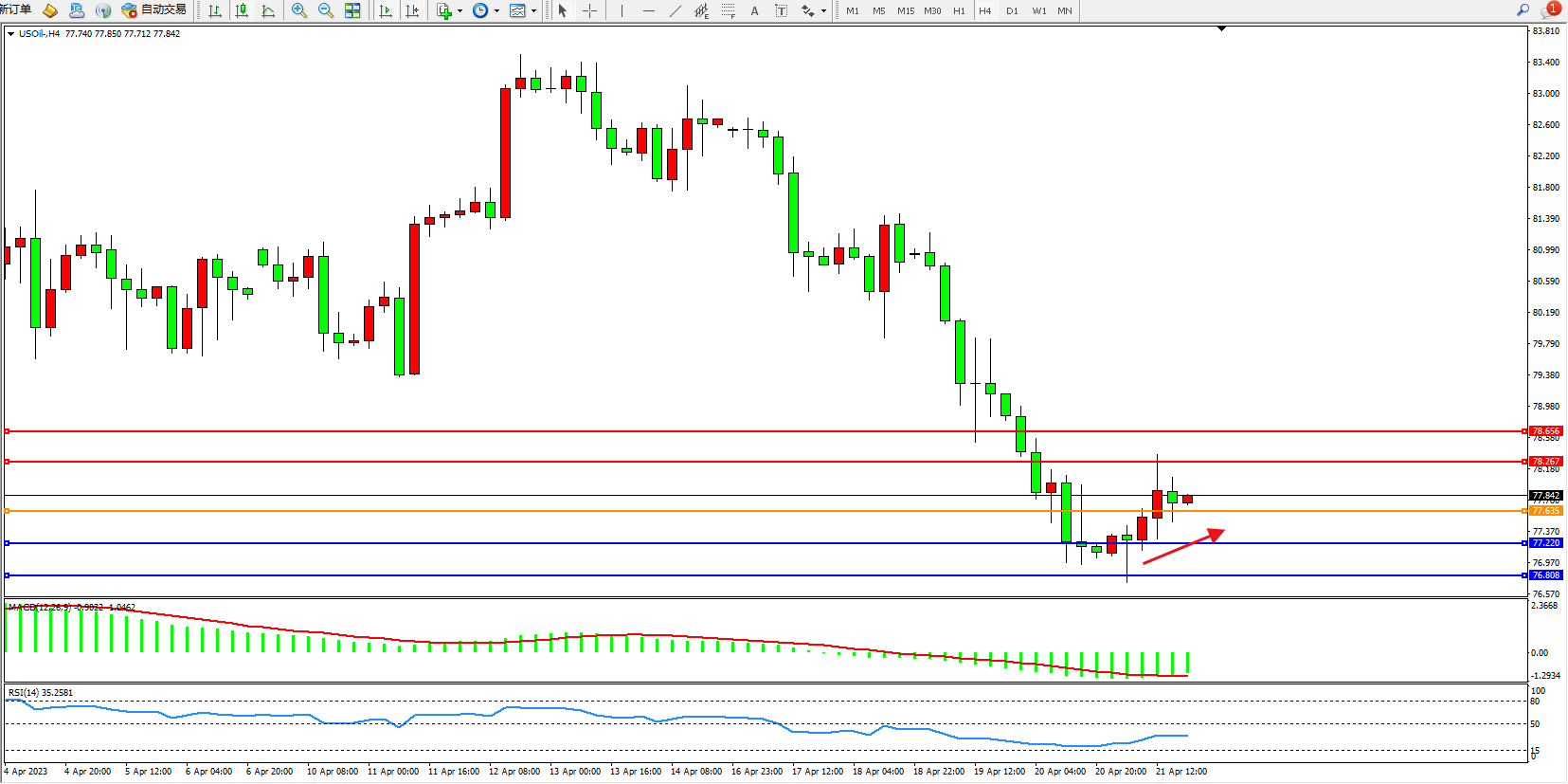 支撑位:77.220  76.808